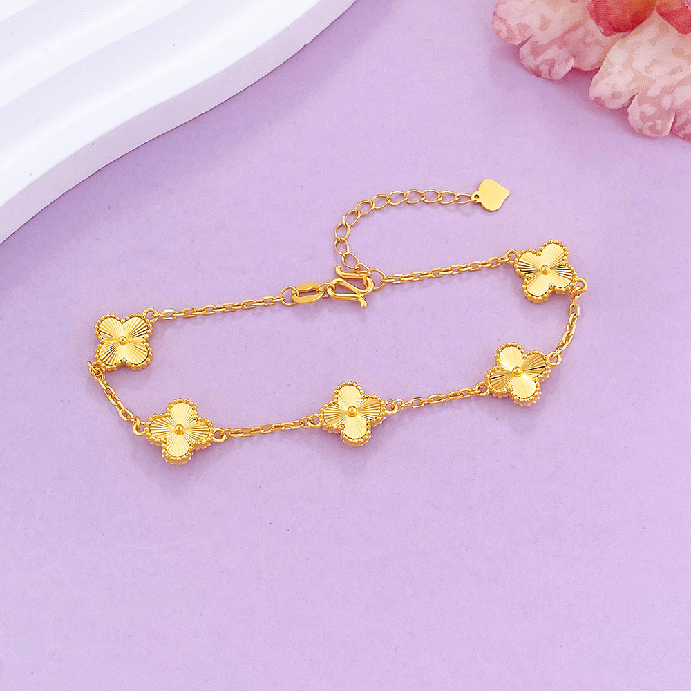 【限时克减128元】足金999 5G黄金调节车花五花四叶草手链五花手链(花形面宽约9.3-9.7mm)(AN5GSL00006-1)(预售产品下单后不退款不退货不换货不补差价)