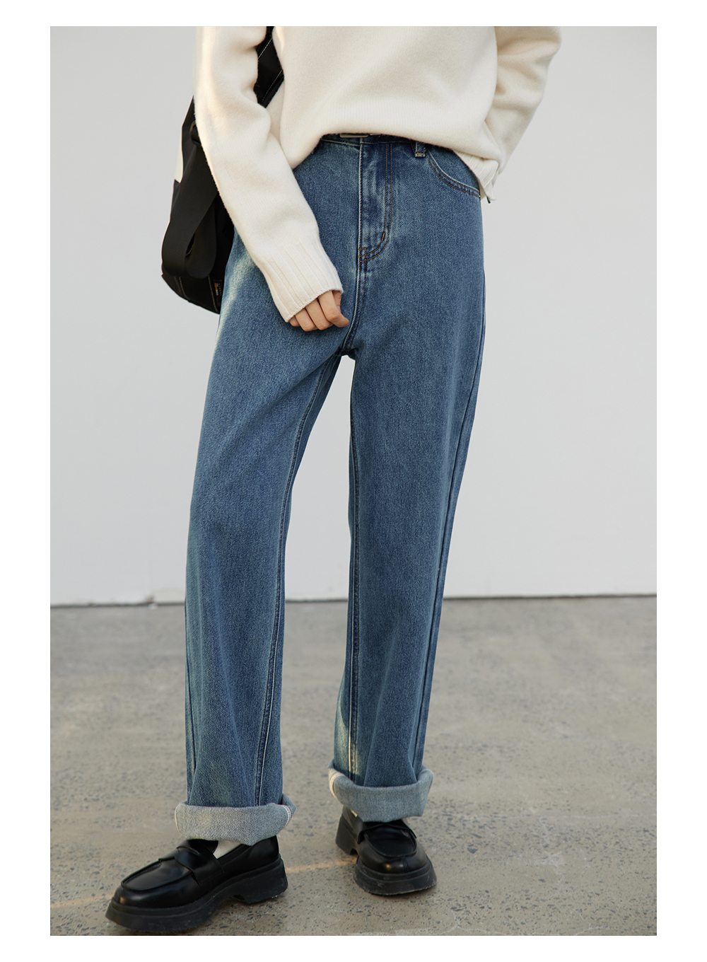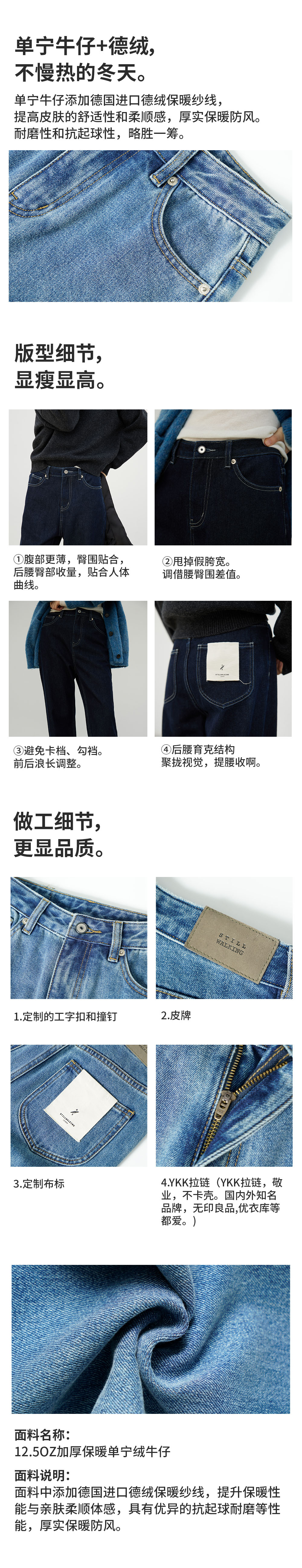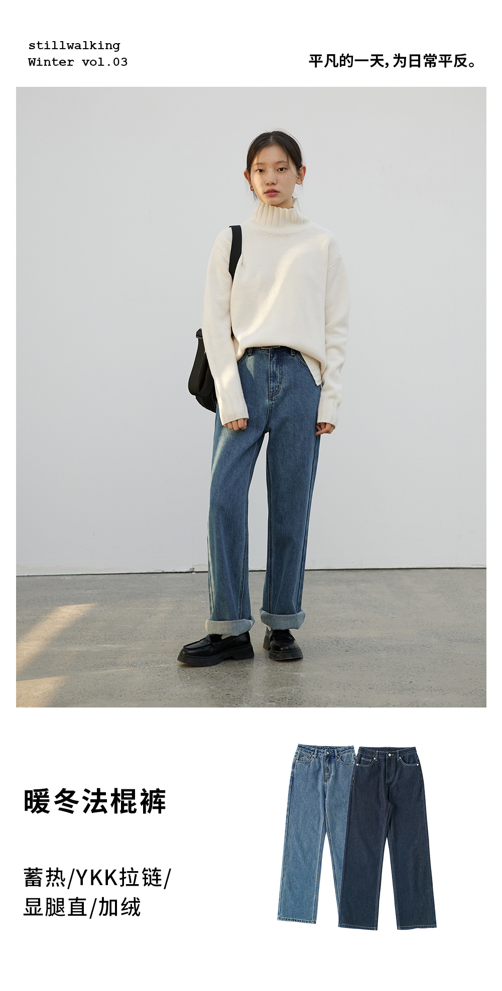 步履不停/3D42071C/加绒微宽松直筒牛仔裤
