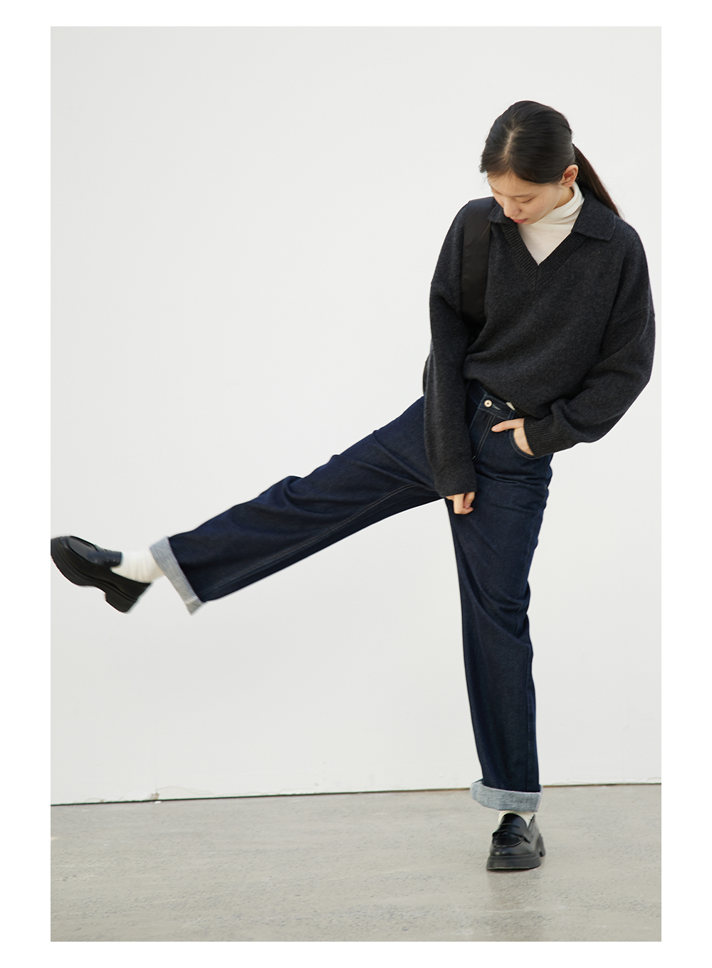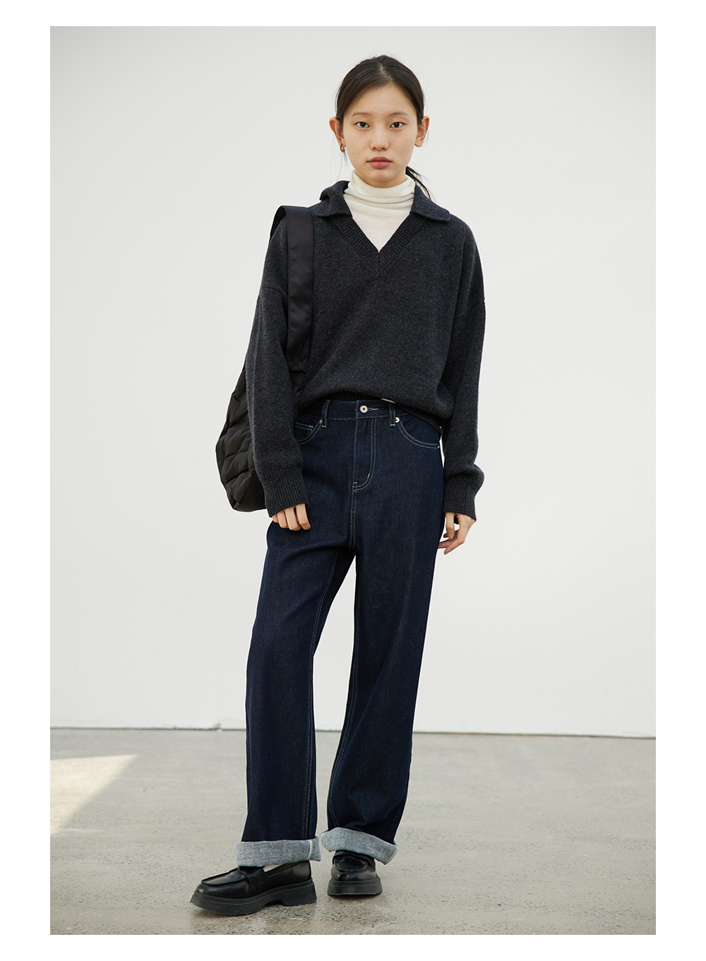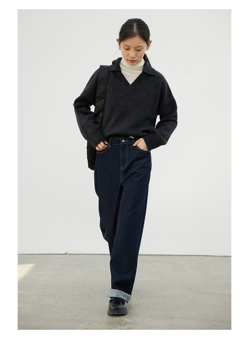 步履不停/3D42071C/加绒微宽松直筒牛仔裤