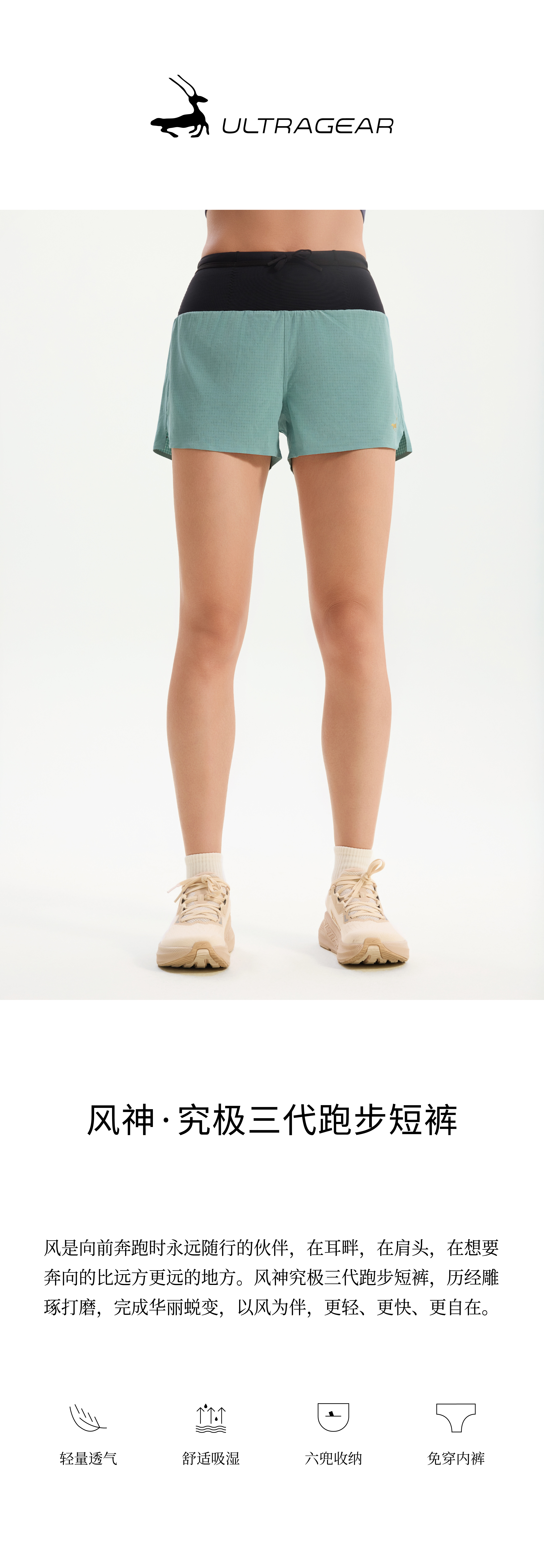 优极UG 风神·女款究极三代六兜训练跑步短裤