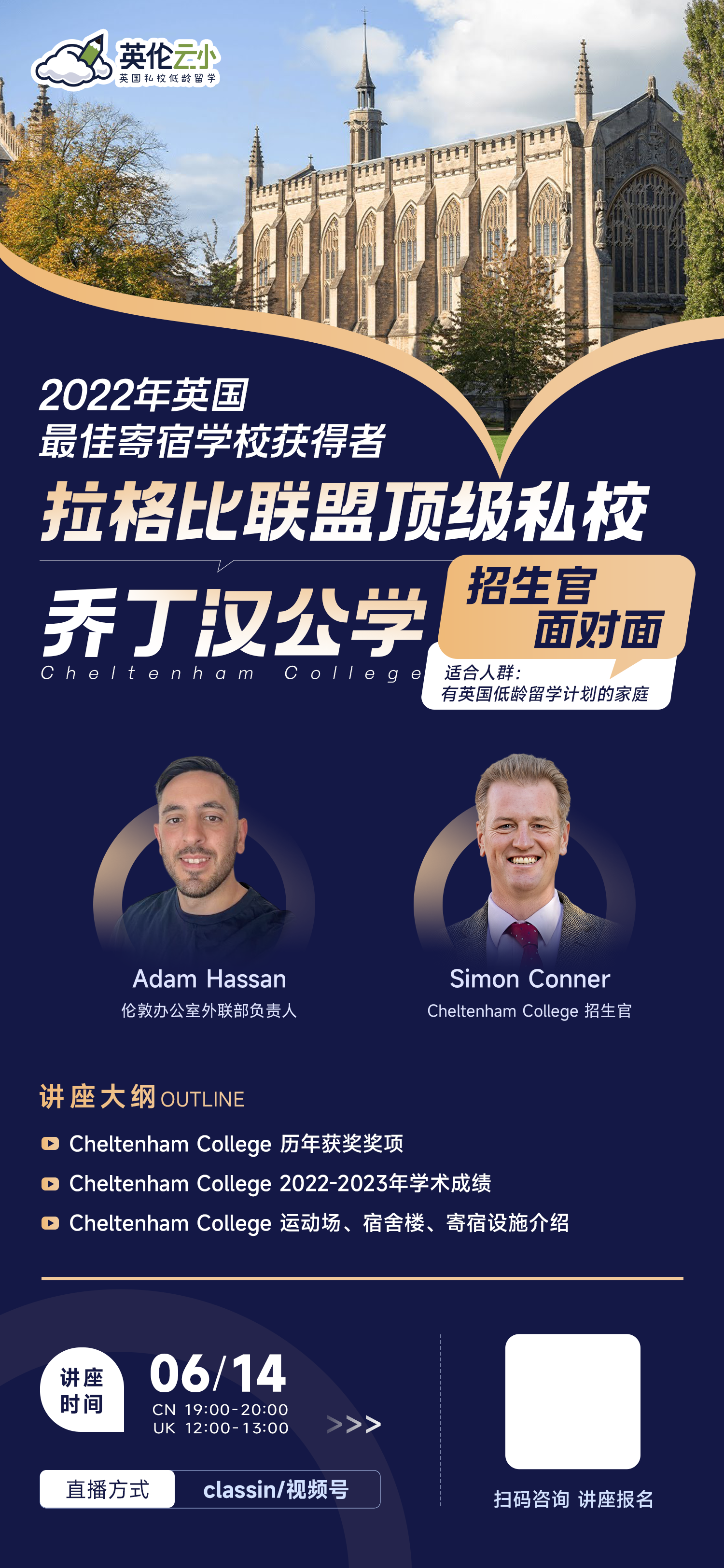 【6.14招生官来了】2022年英国最佳寄宿学校奖获得者——拉格比联盟顶级私校Cheltenham College 乔丁汉公学招生官面对面