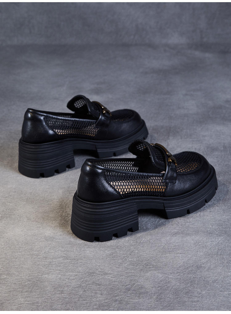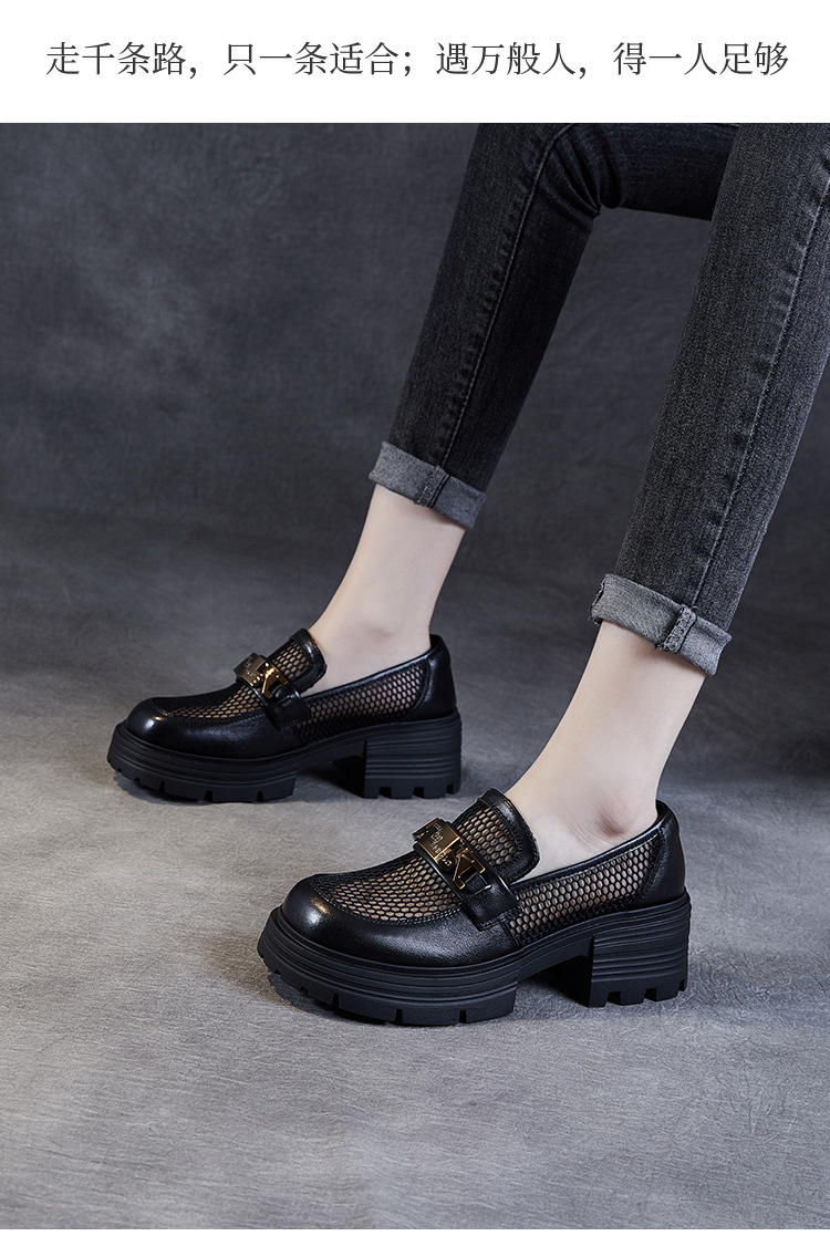网面厚底乐福鞋,真皮透气网纱小皮鞋一脚蹬单鞋ZM24X767