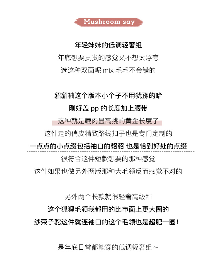 - 九年女装沉淀 初心是设计 用心在品质 biu~ 淘宝女装店:金蘑菇菇
