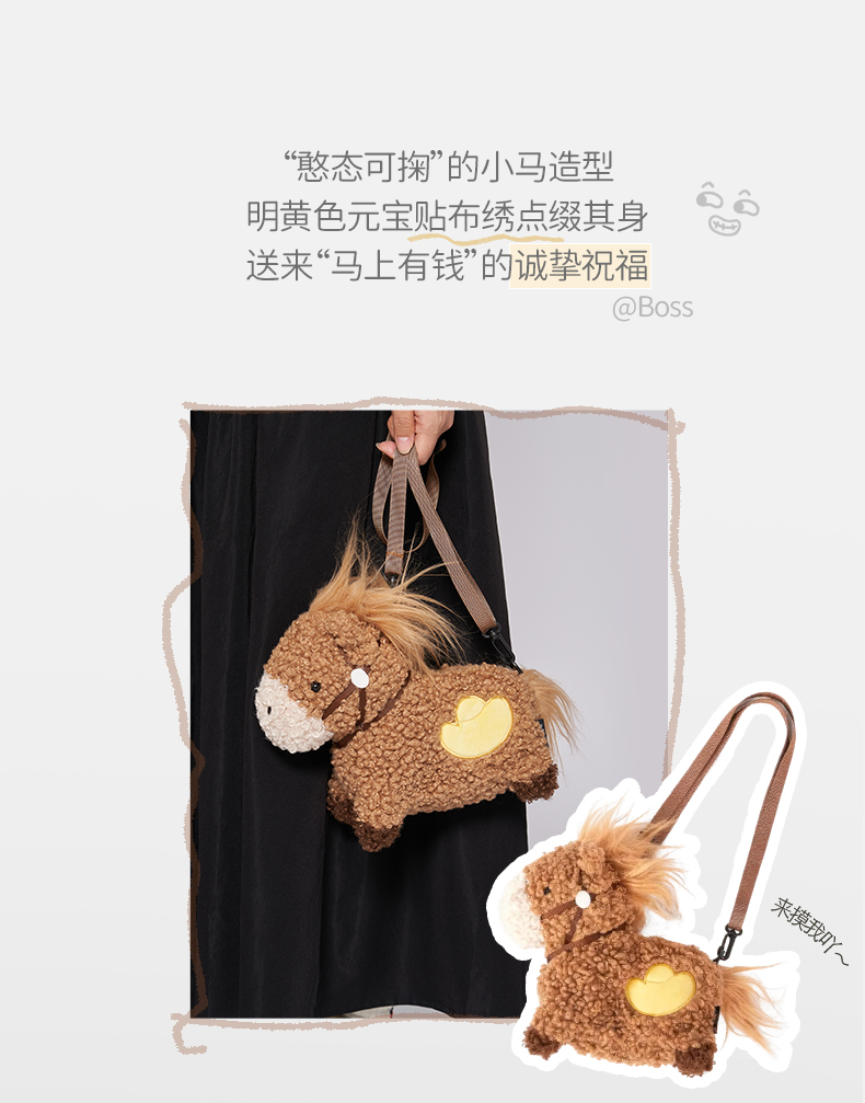 大英博物馆 新年系列 马上有钱 羊羔毛手机包斜挎包