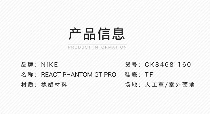 「React缓震」NIKE/耐克PHANTOM GT次高端TF碎钉足球鞋CK8468160