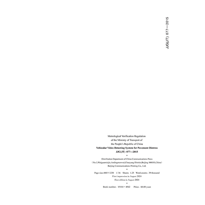 书名:车载式路面损坏视频检测系统(英文版)[JJG (JT) 077—2015]