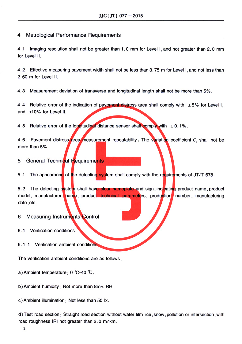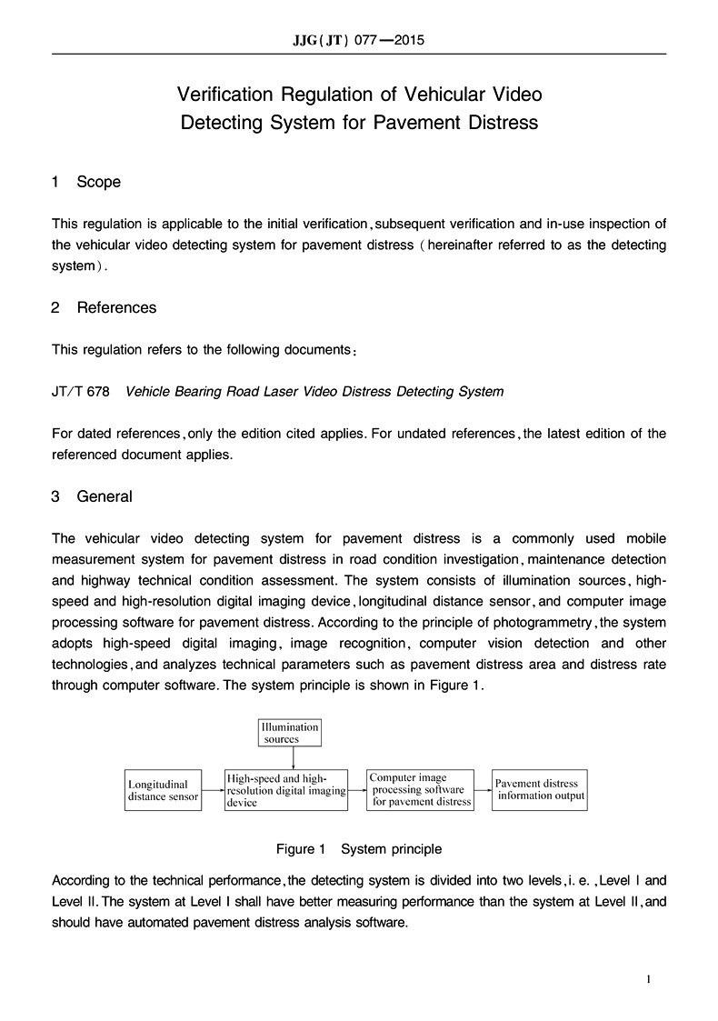 车载式路面损坏视频检测系统(英文版)[JJG (JT) 077—2015]