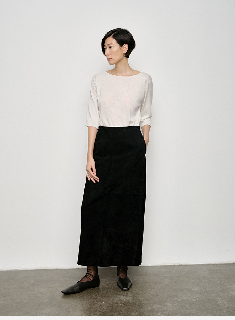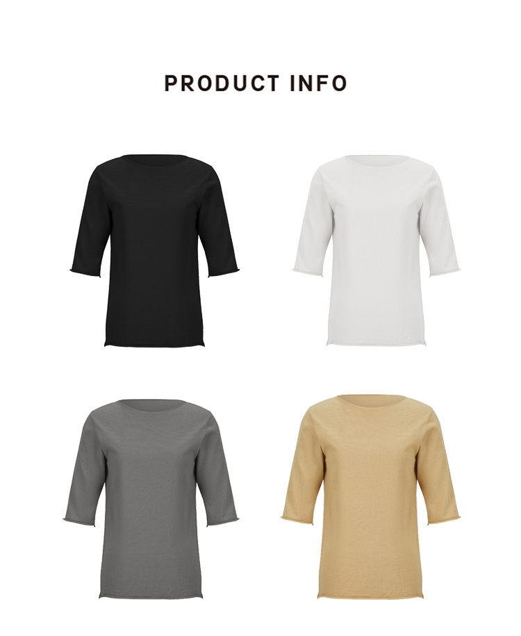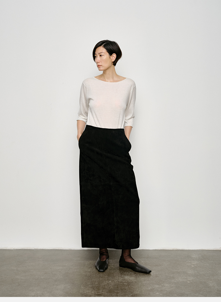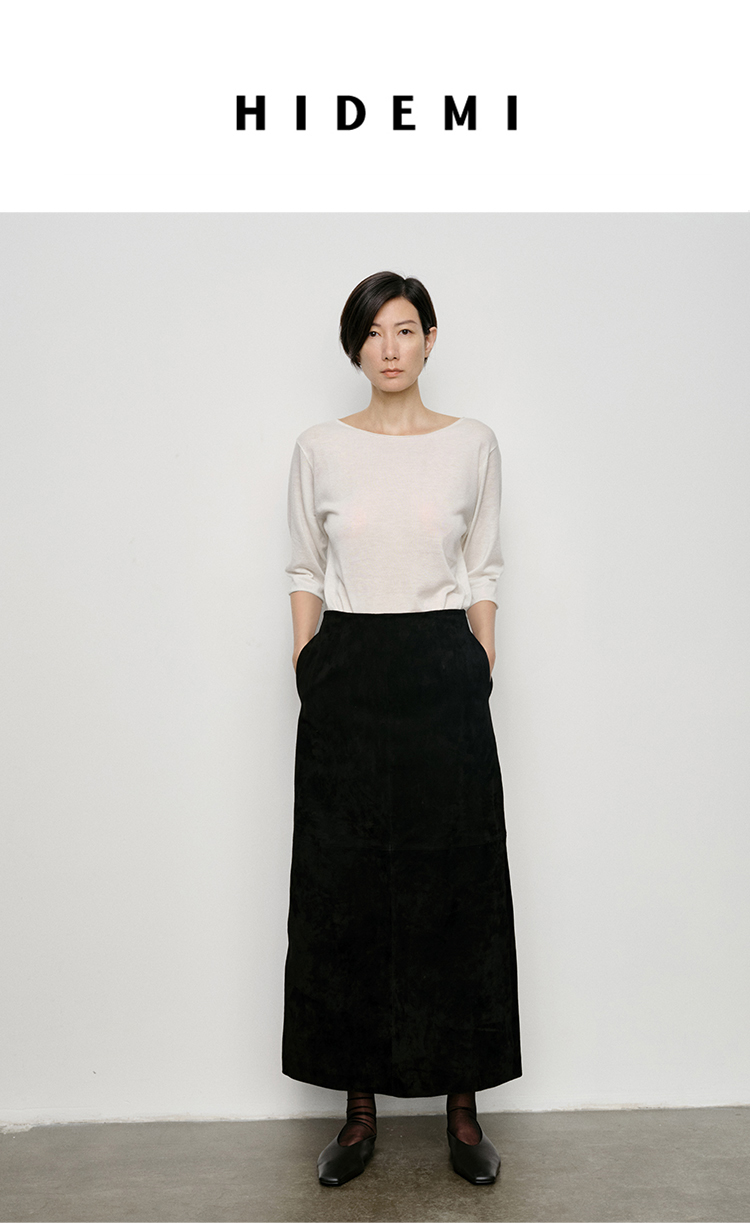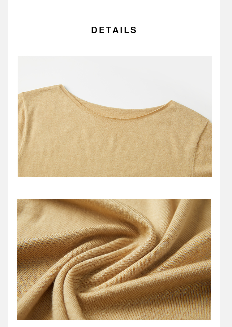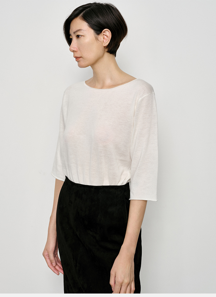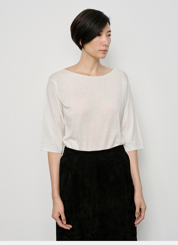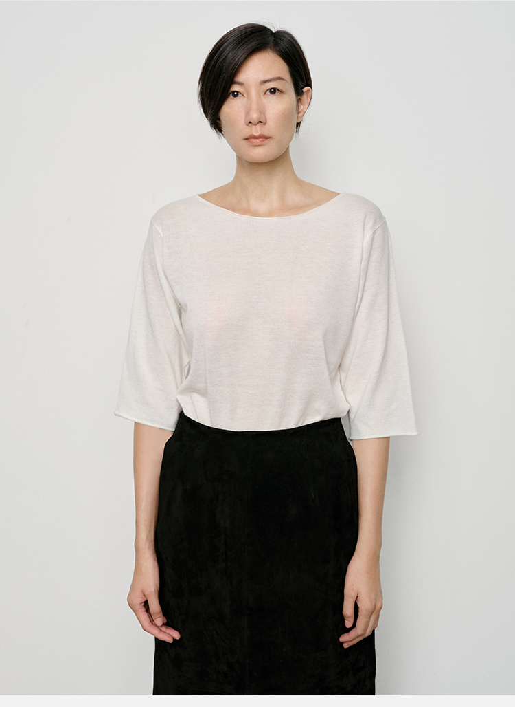 HIDEMI 弧形圆领极简山羊绒真丝中袖针织短袖上衣