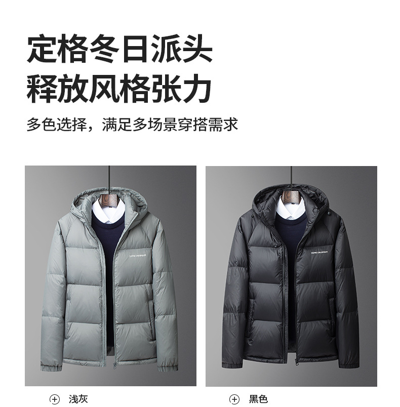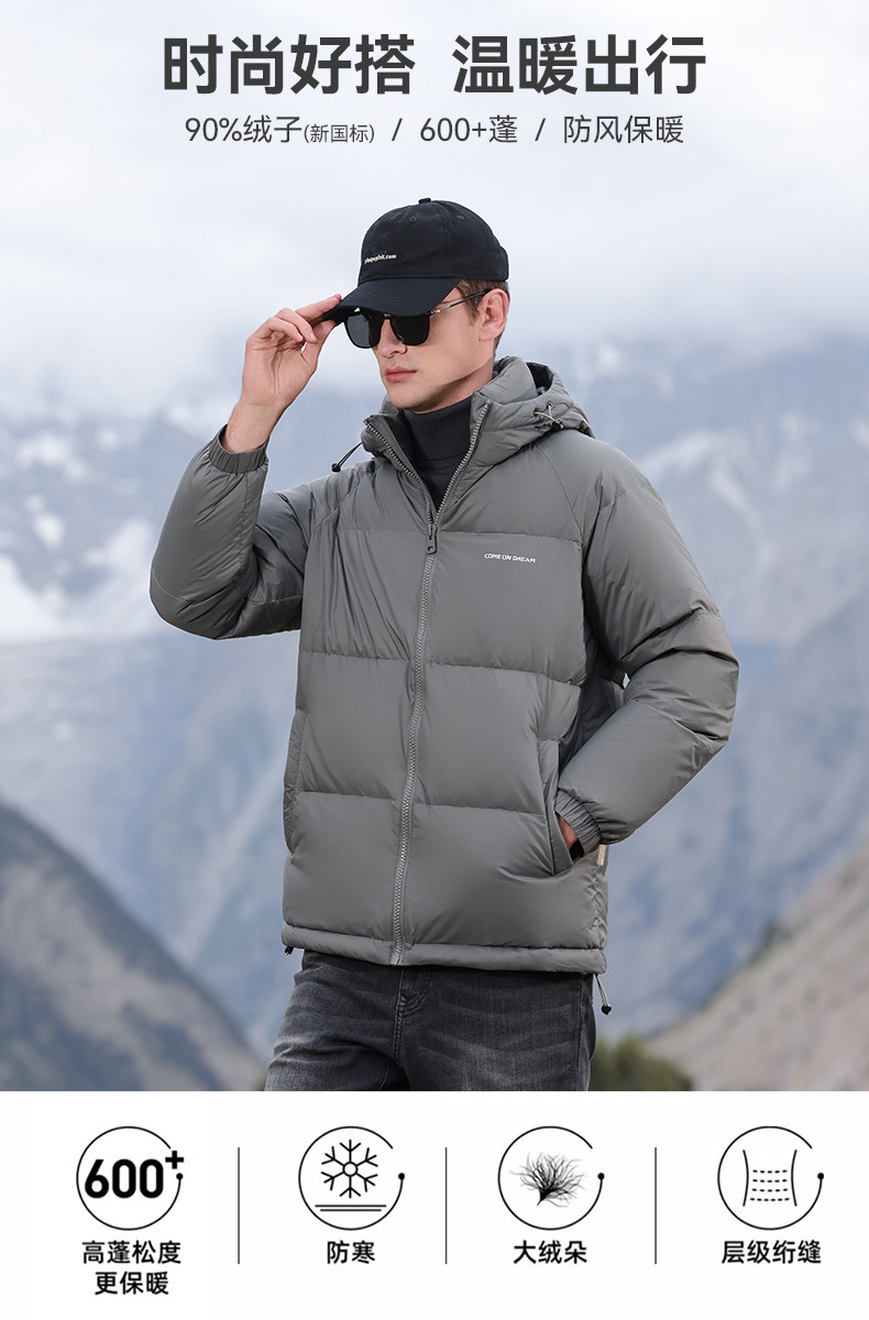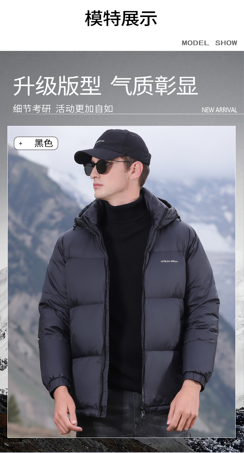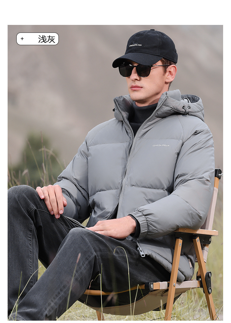【新国标90白鸭绒】90绒子蓬松白鸭绒 连帽羽绒服男加厚保暖冬季面包外套短款