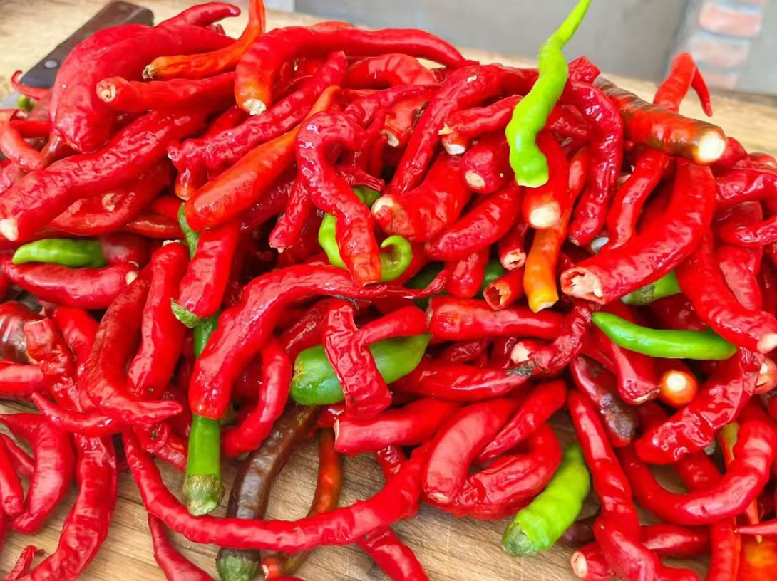 清晨采摘新鲜辣椒