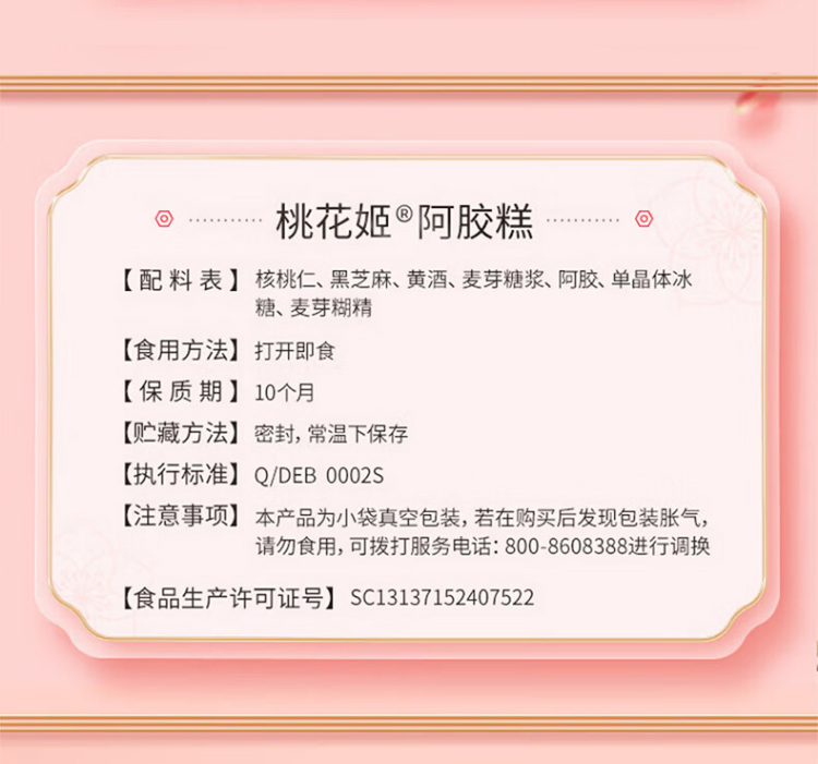 东阿阿胶 桃花姬阿胶糕180g/盒
