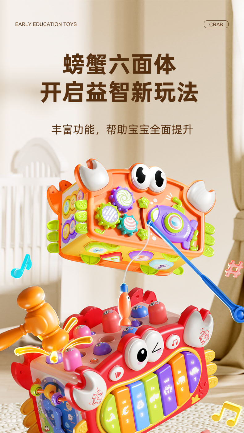 声光多功能螃蟹打地鼠六面体益智玩具-纪念日百货门店同款168097192