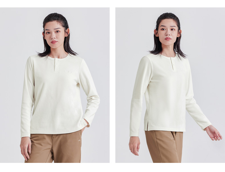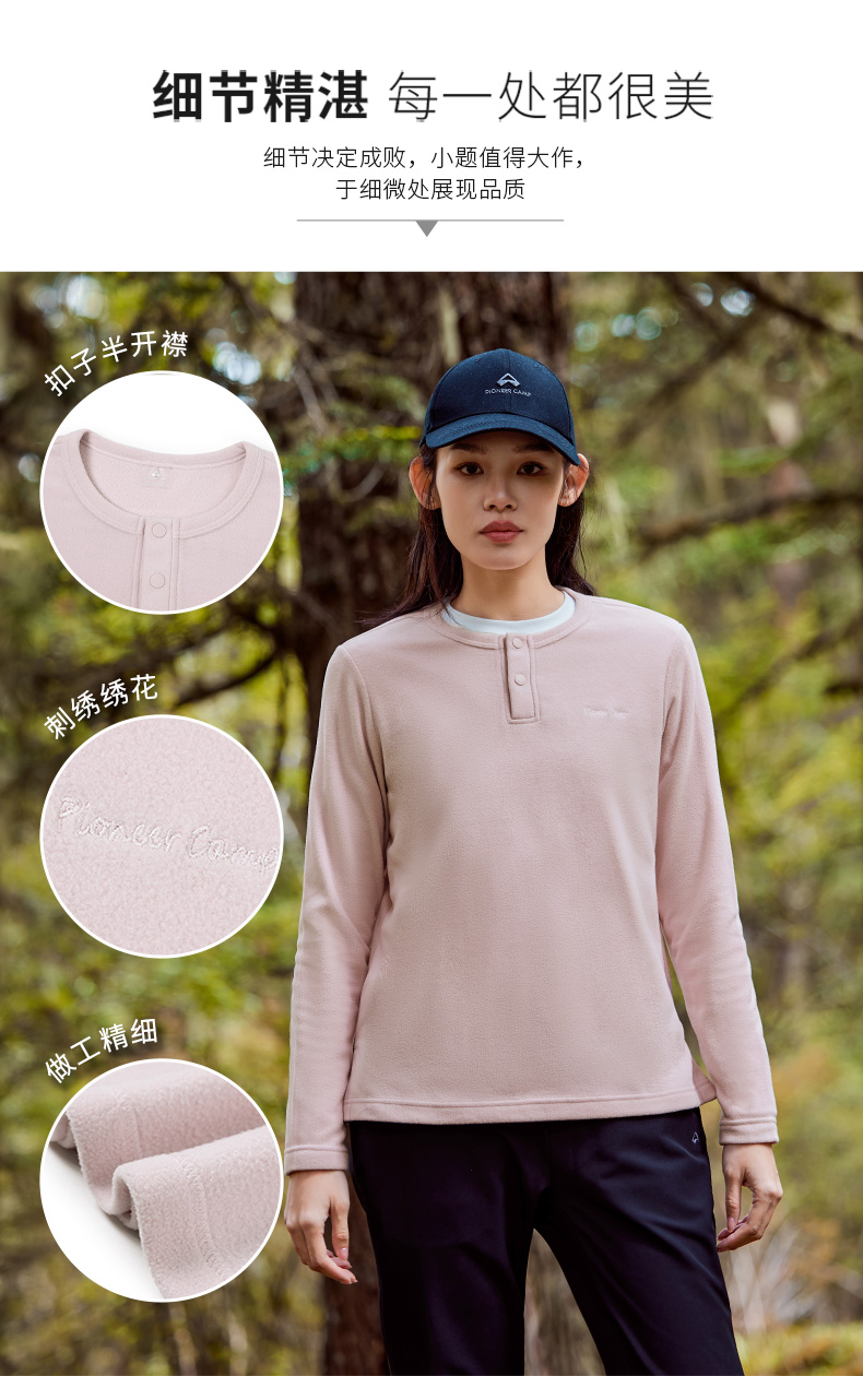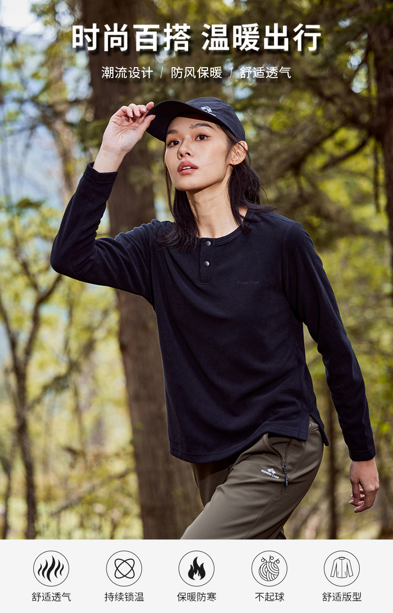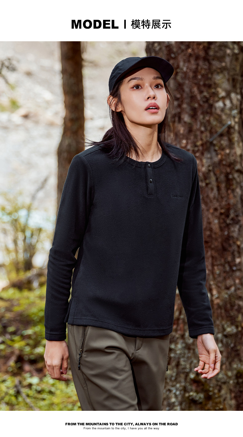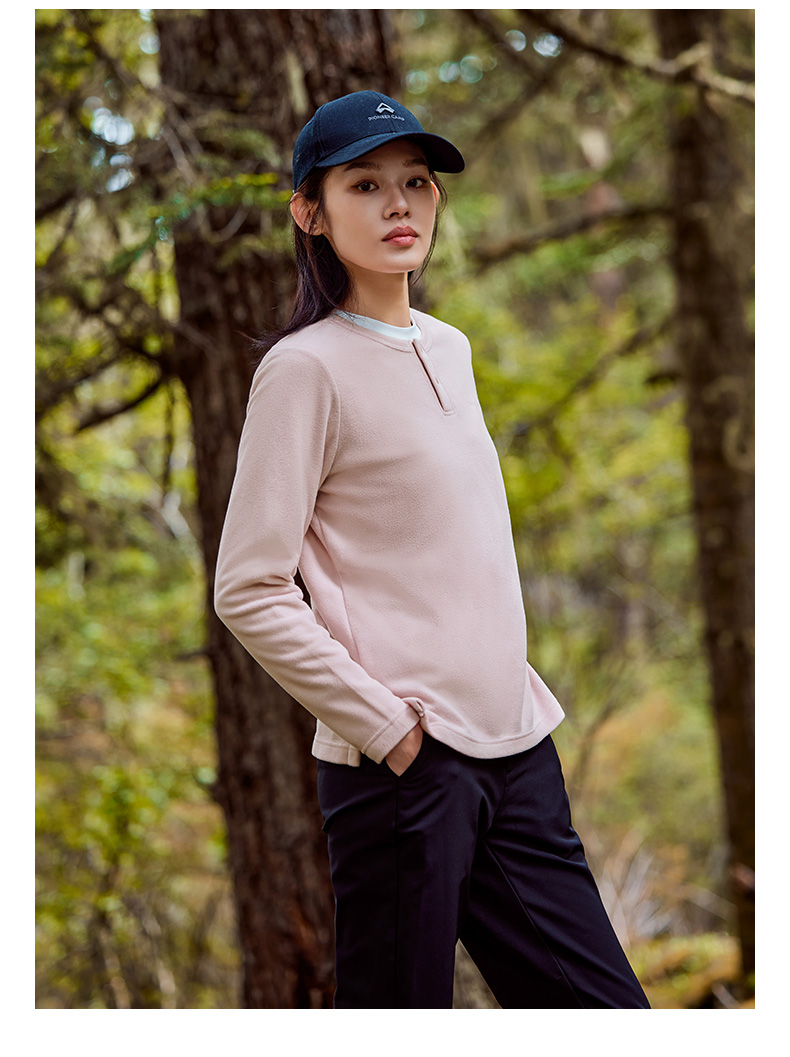 女款【轻量摇粒绒】拓路者保暖内搭长袖体恤 百搭简约户外运动套头T恤衫 【tbzg】
