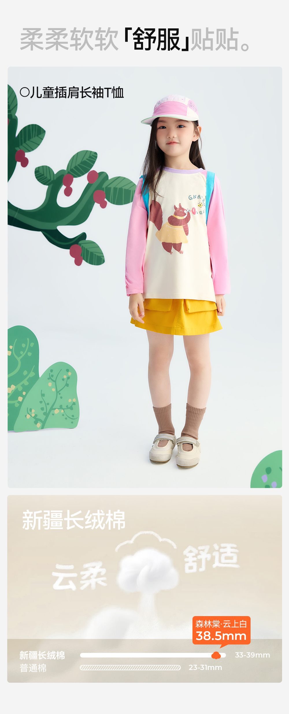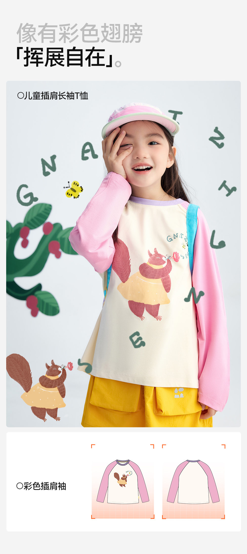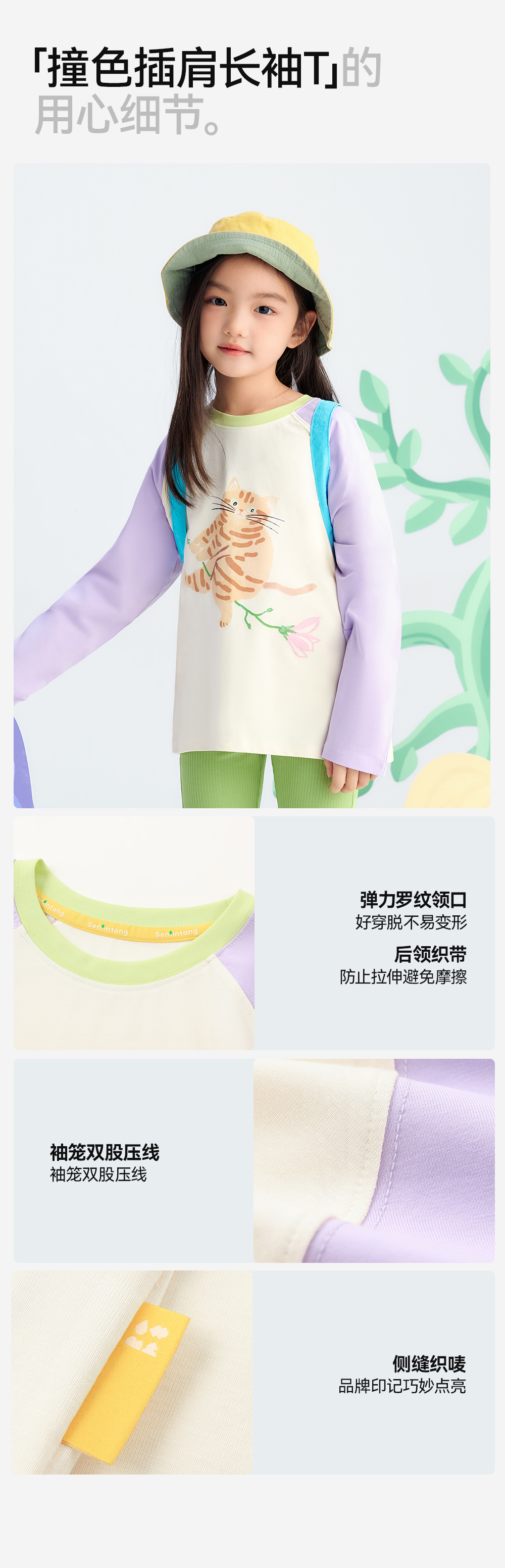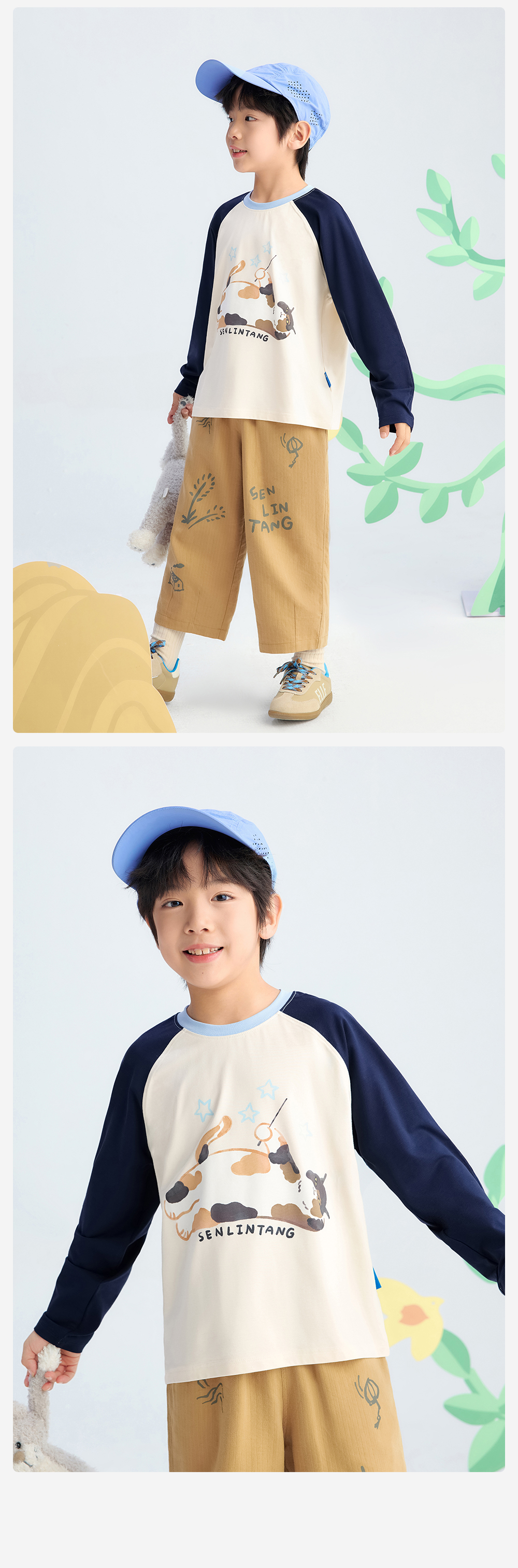 【原创插画长袖T】森林棠26春云上白高弹透气撞色插肩袖卡通T恤20261235【HZ】