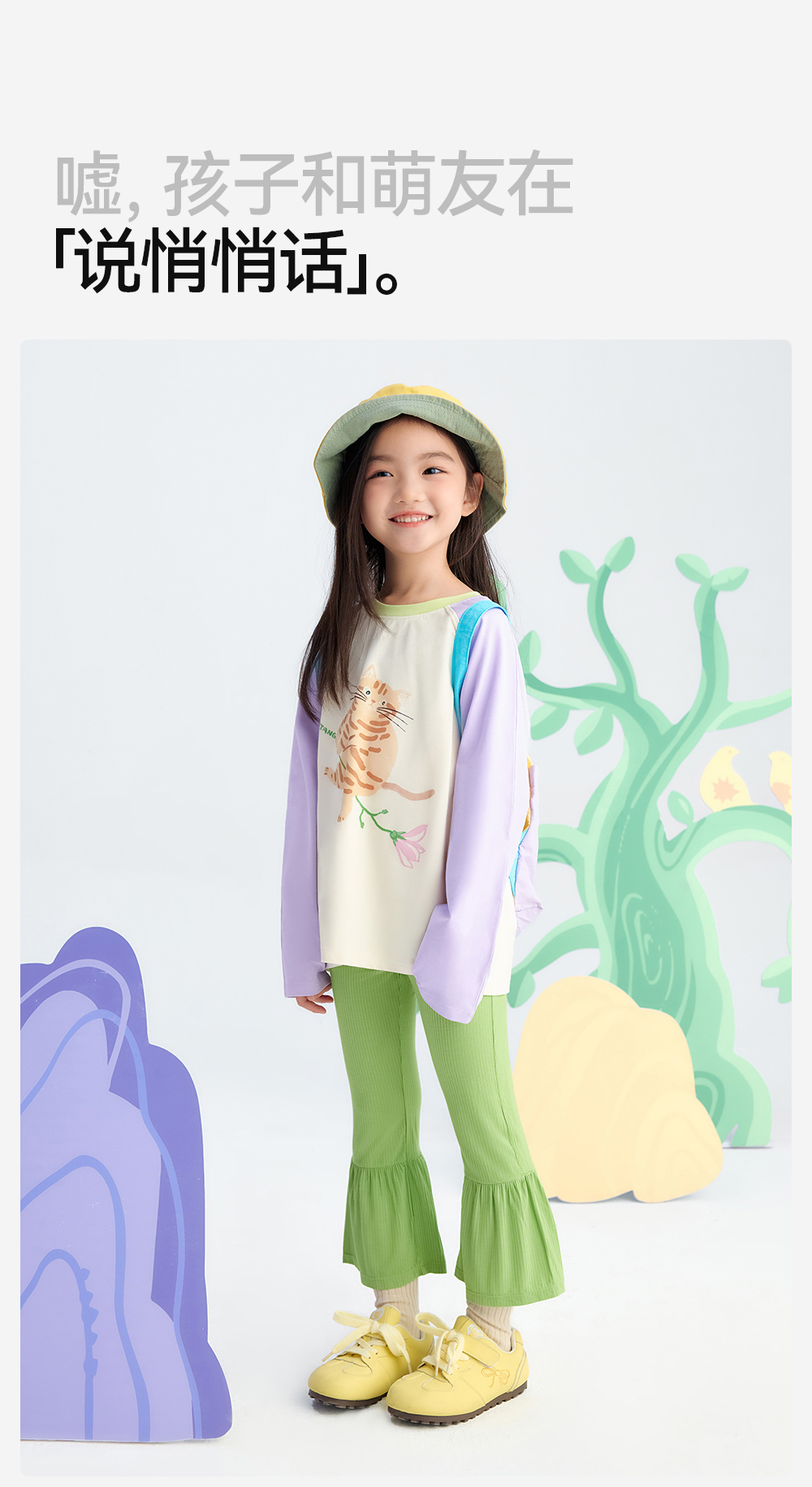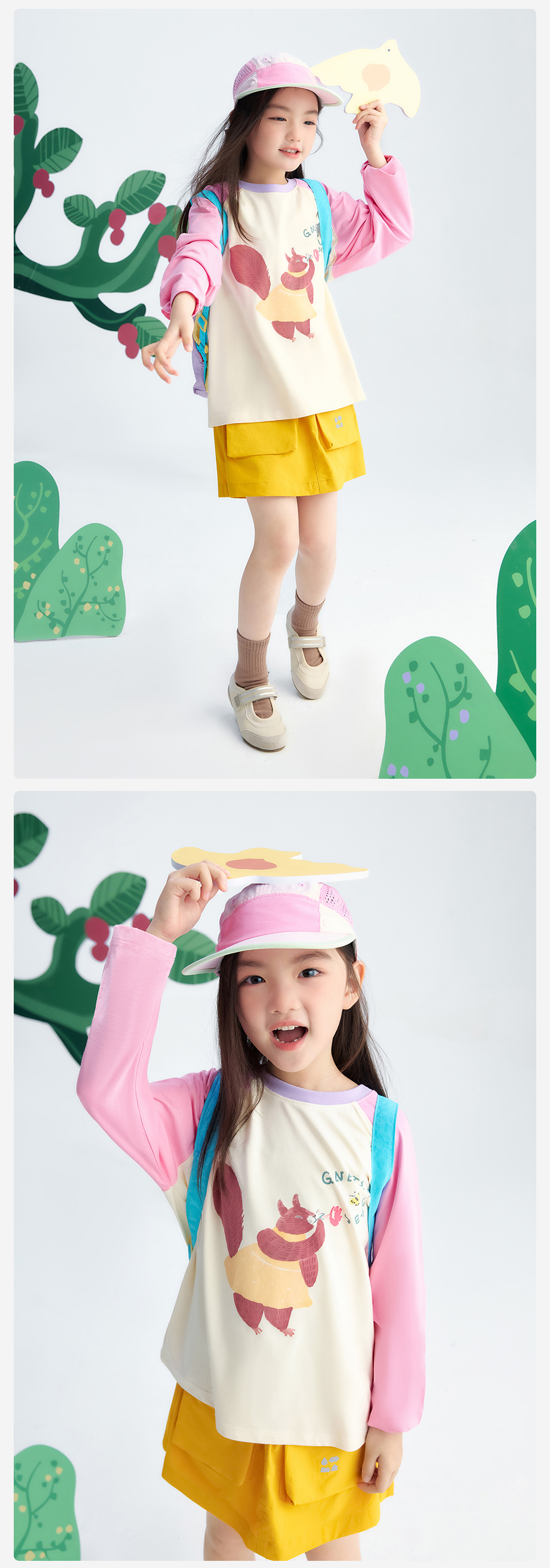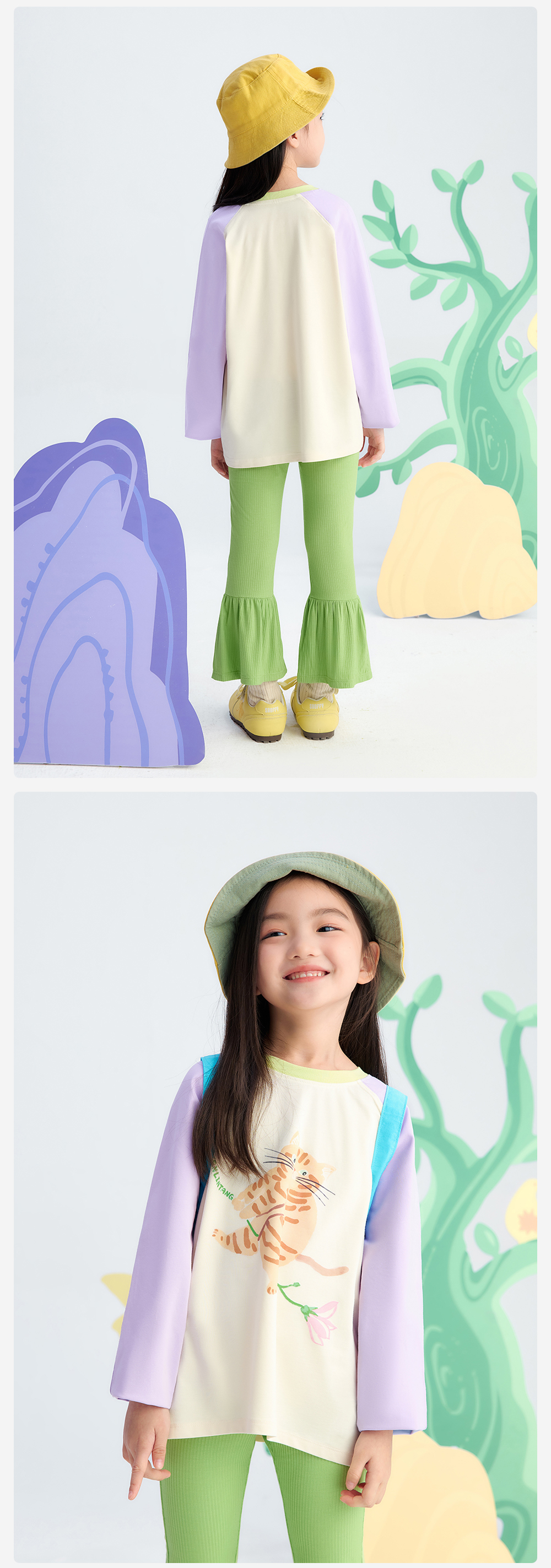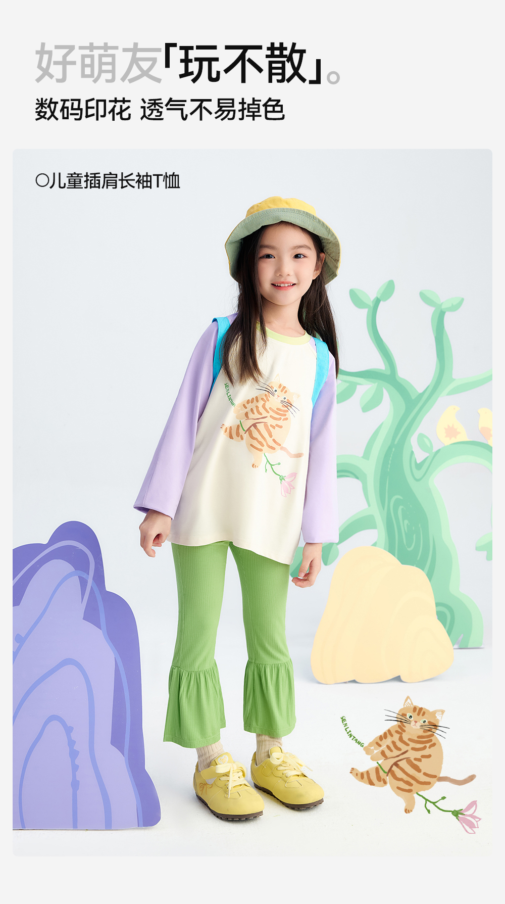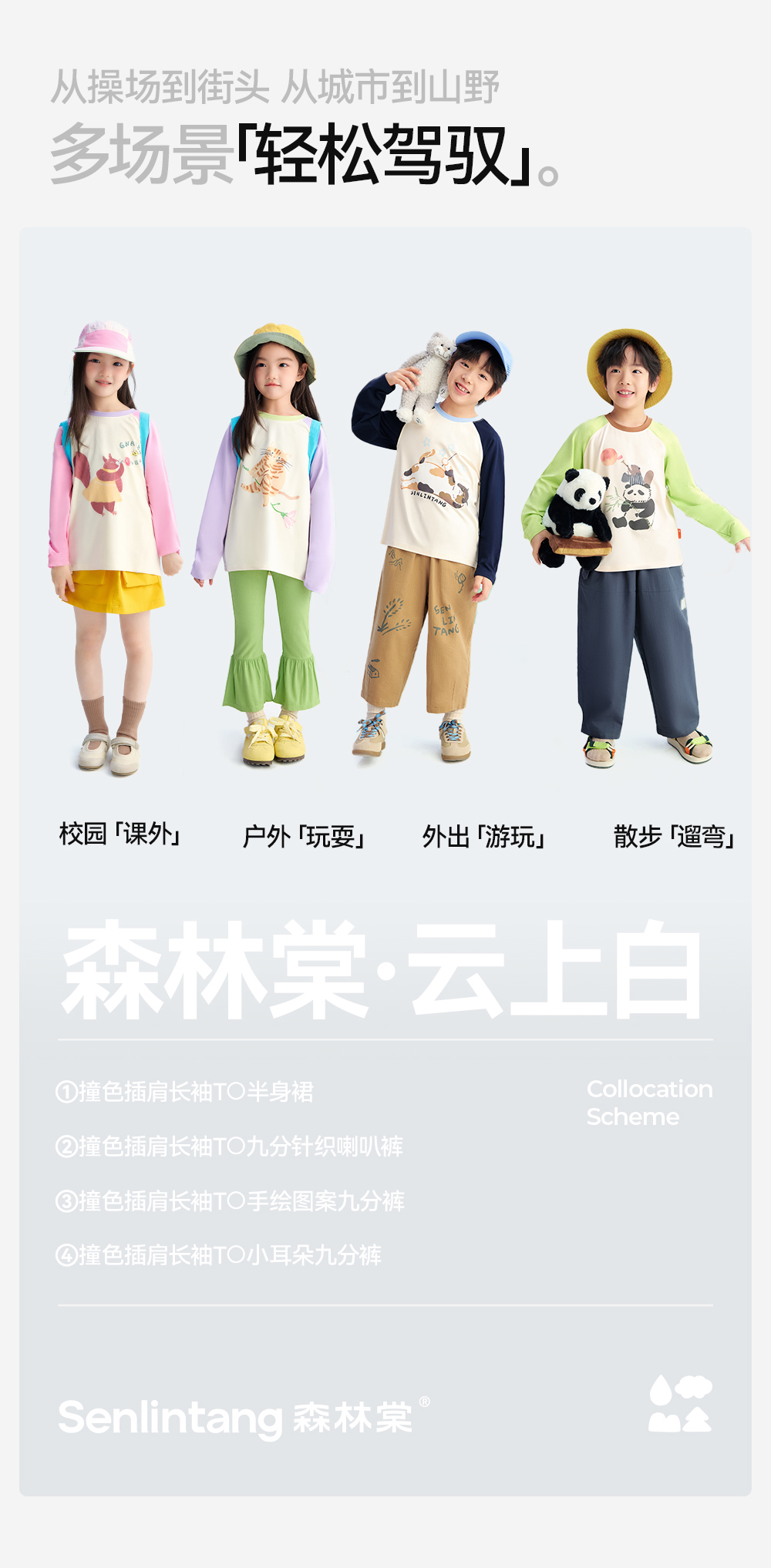 【原创插画长袖T】森林棠26春云上白高弹透气撞色插肩袖卡通T恤20261235【HZ】