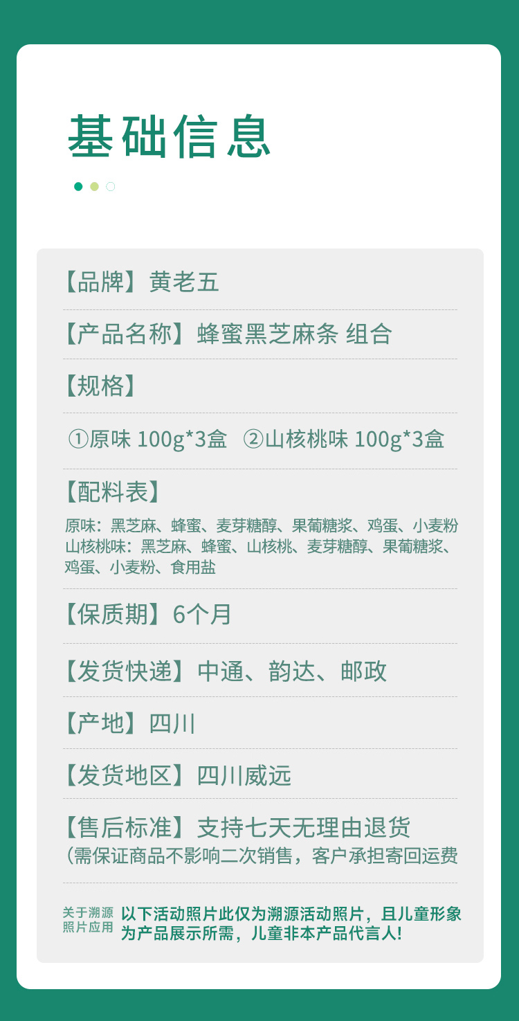 黄老五 蜂蜜黑芝麻条100g*3盒