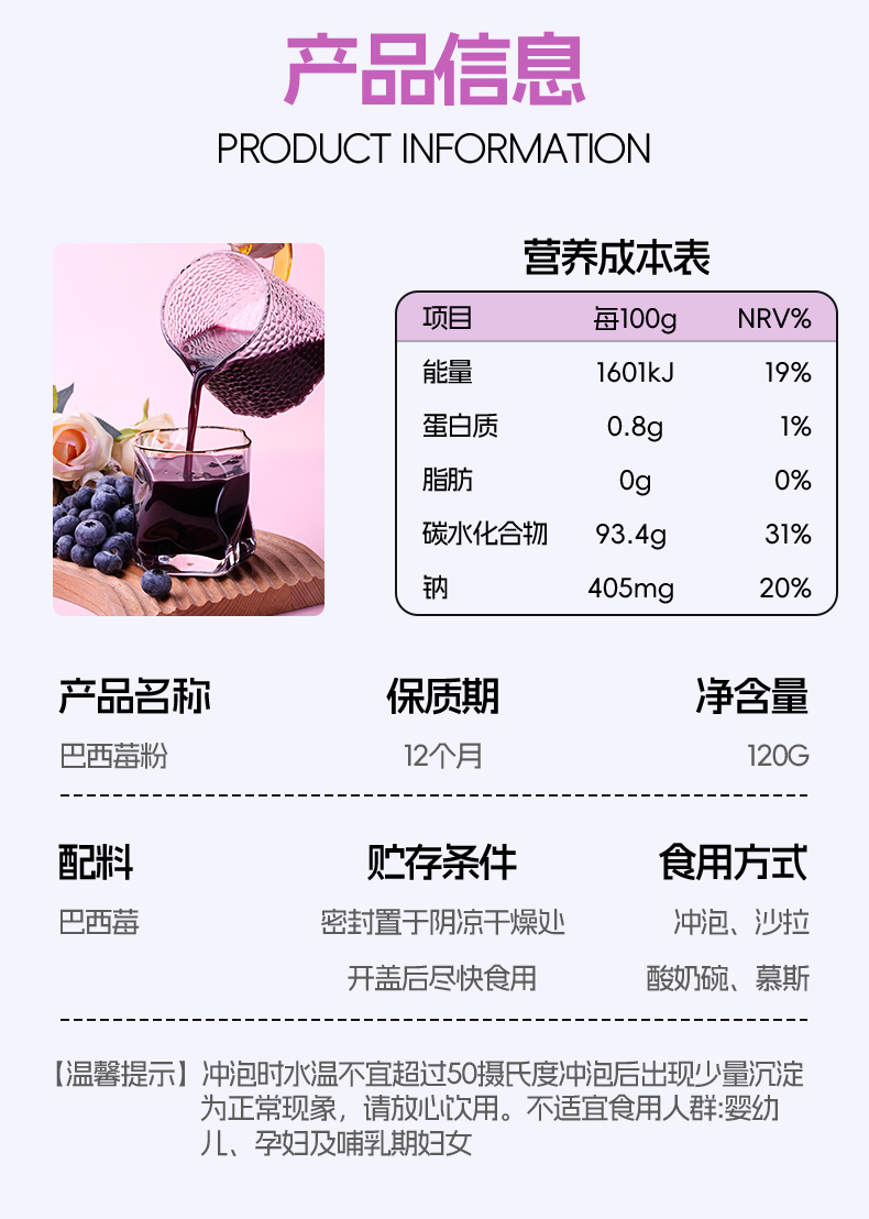 昔日印象x巴西莓粉天自然巴西莓果蔬纤维粉