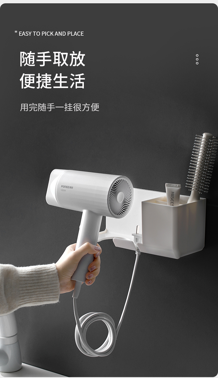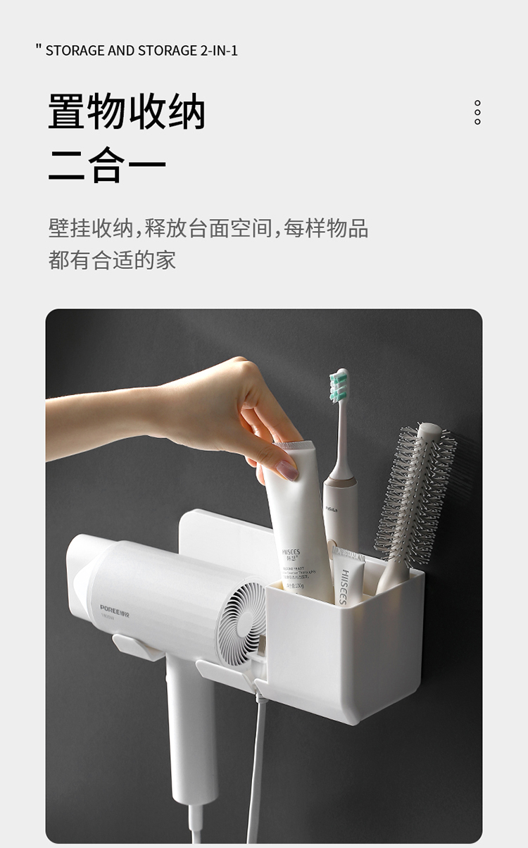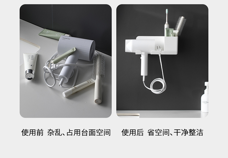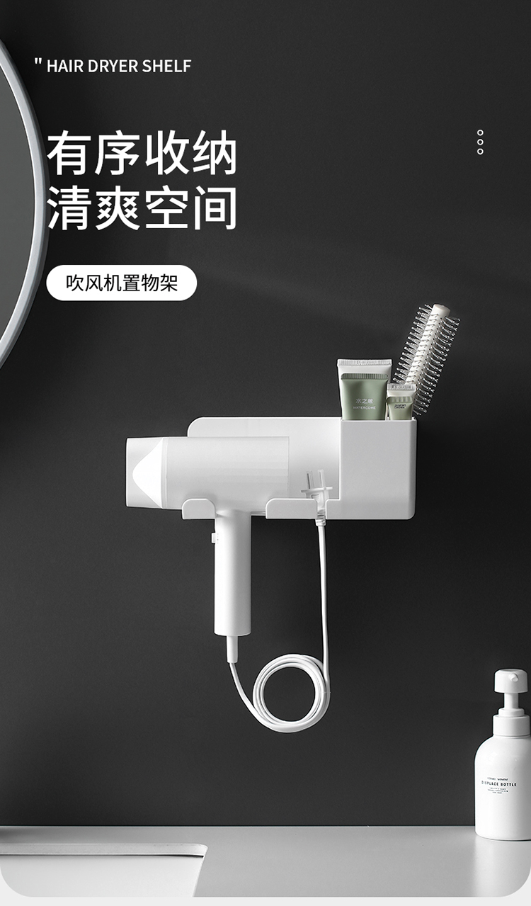 FaSoLa吹风机置物架免打孔卫生间收纳绕线电吹风挂架吹风筒支架浴室架子