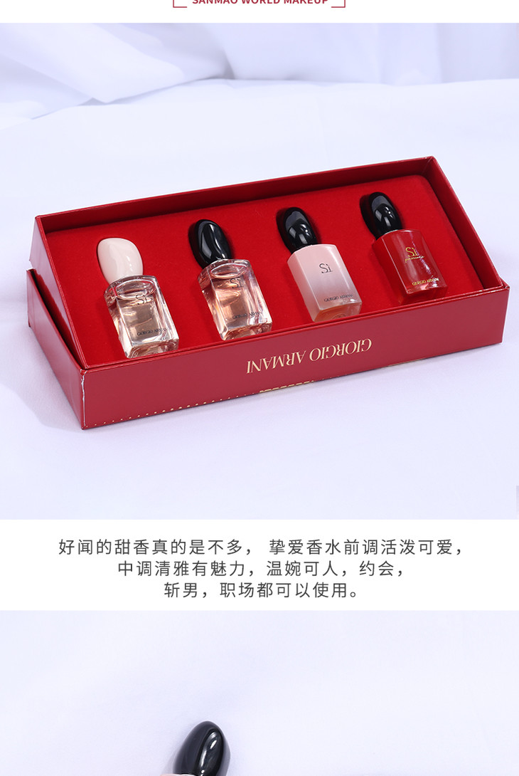 2月12日停发!【小来】限时送随机护手霜+小镜子🎉ARMANI阿玛尼香水套装 红色挚爱浓香真情流露女士红瓶Q香7ml*4 礼盒
