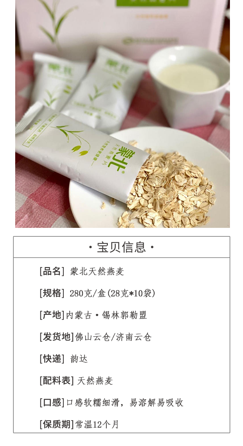 【蒙北天然燕麦片】海拔1000米以上种植,有机燕麦,高蛋白/低脂/丰富膳食纤维,C4超低营养保全专利技术