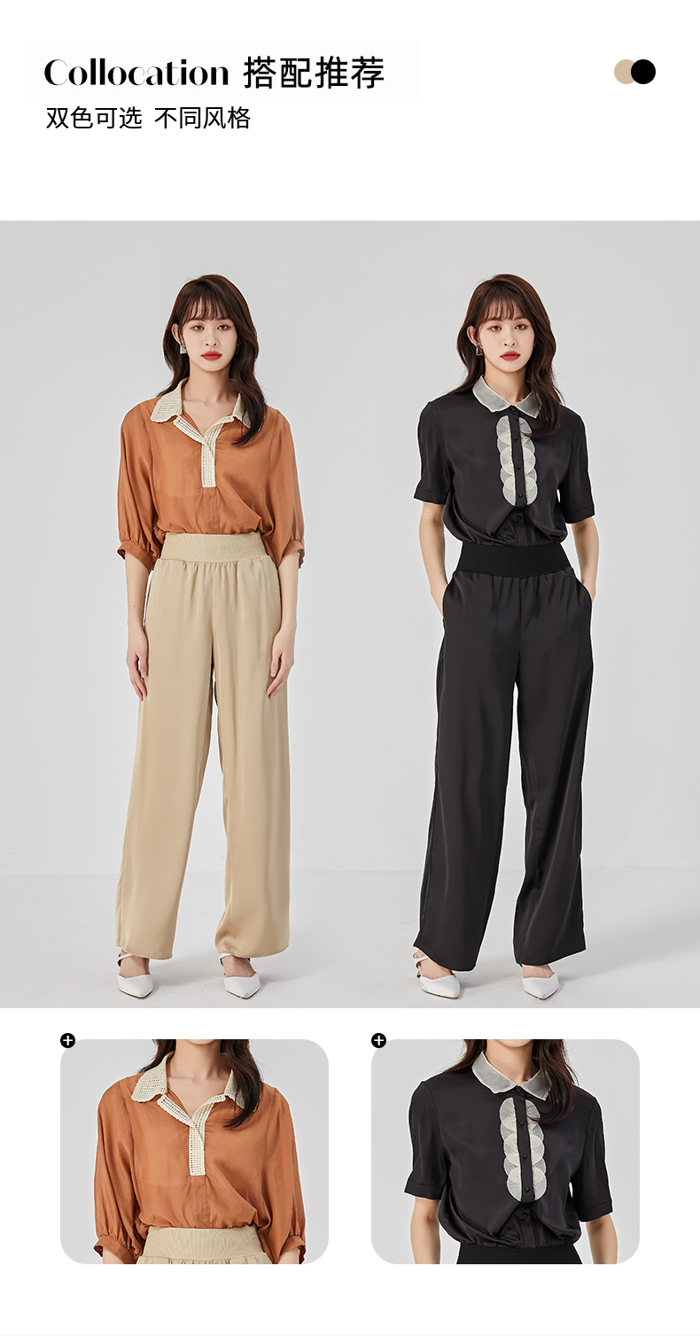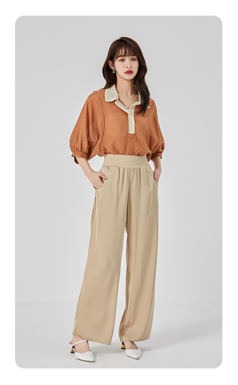 oldcolour2023夏新款简约通勤高腰阔腿百搭垂坠感休闲裤O22073255