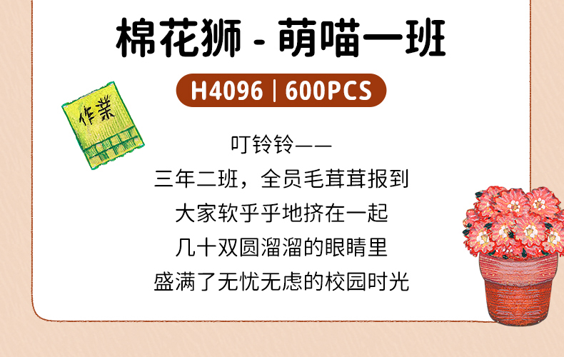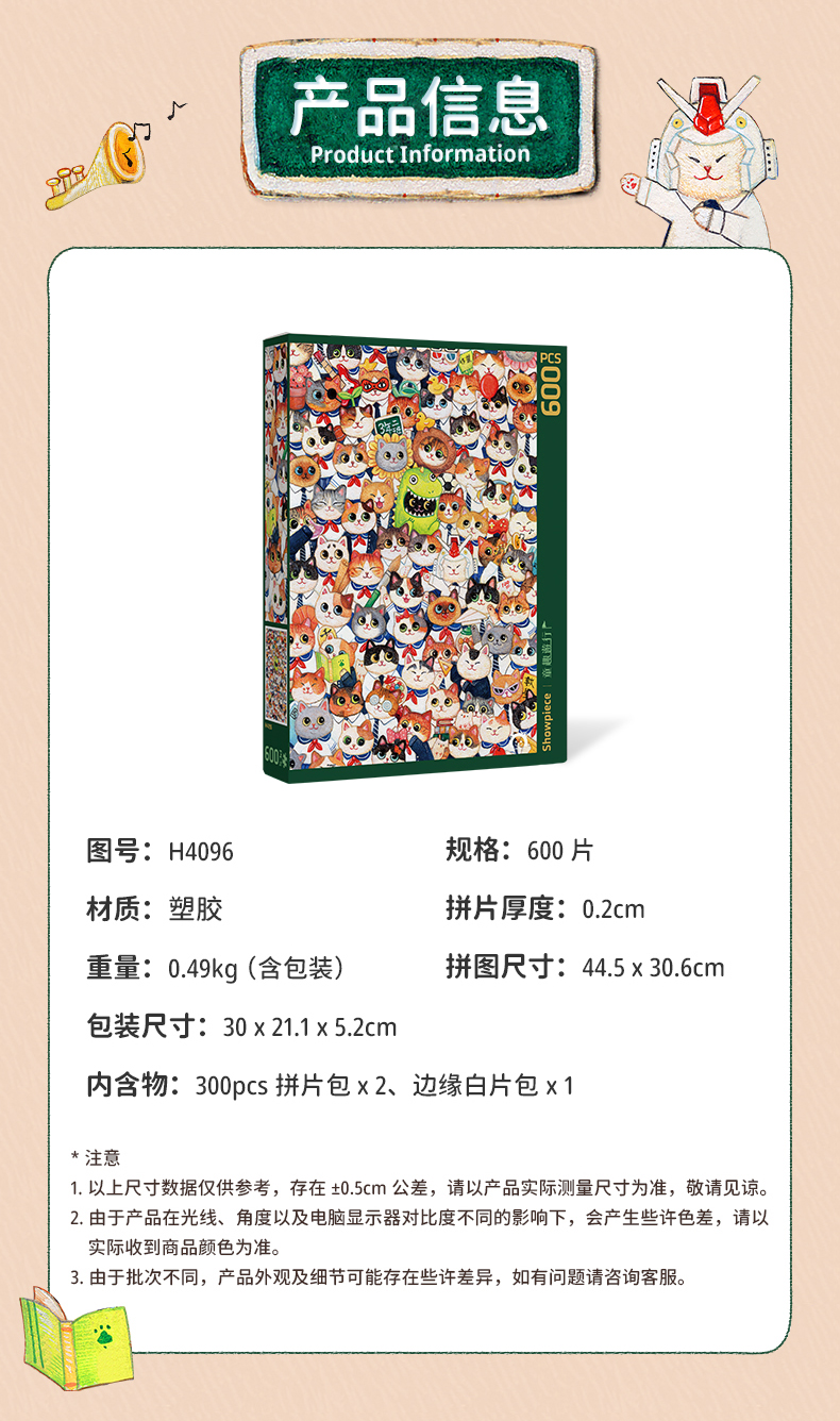 600片 平面塑料拼图 H4096 棉花狮-萌喵一班