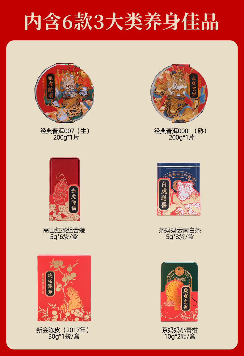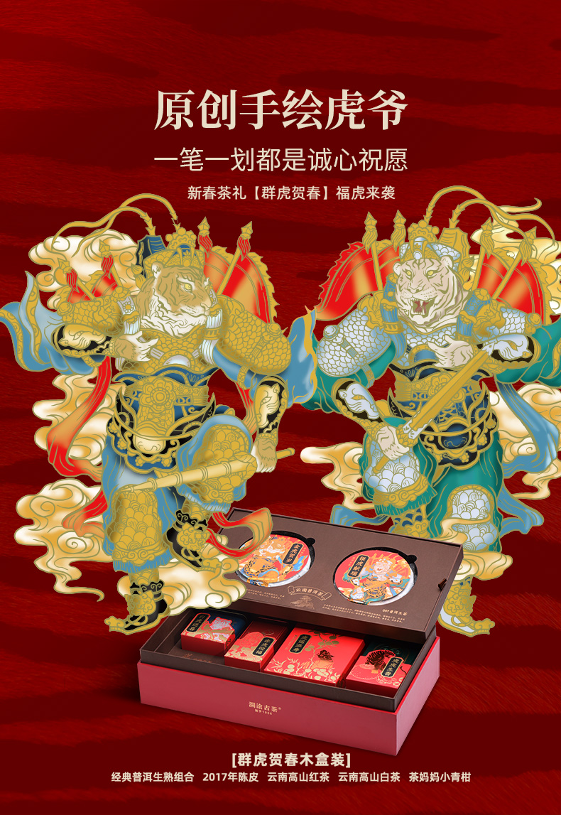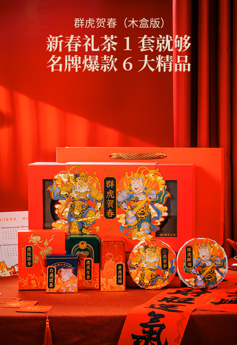 【新品】澜沧古茶新春茶礼群虎贺春木盒装普洱小青柑白茶红茶陈皮
