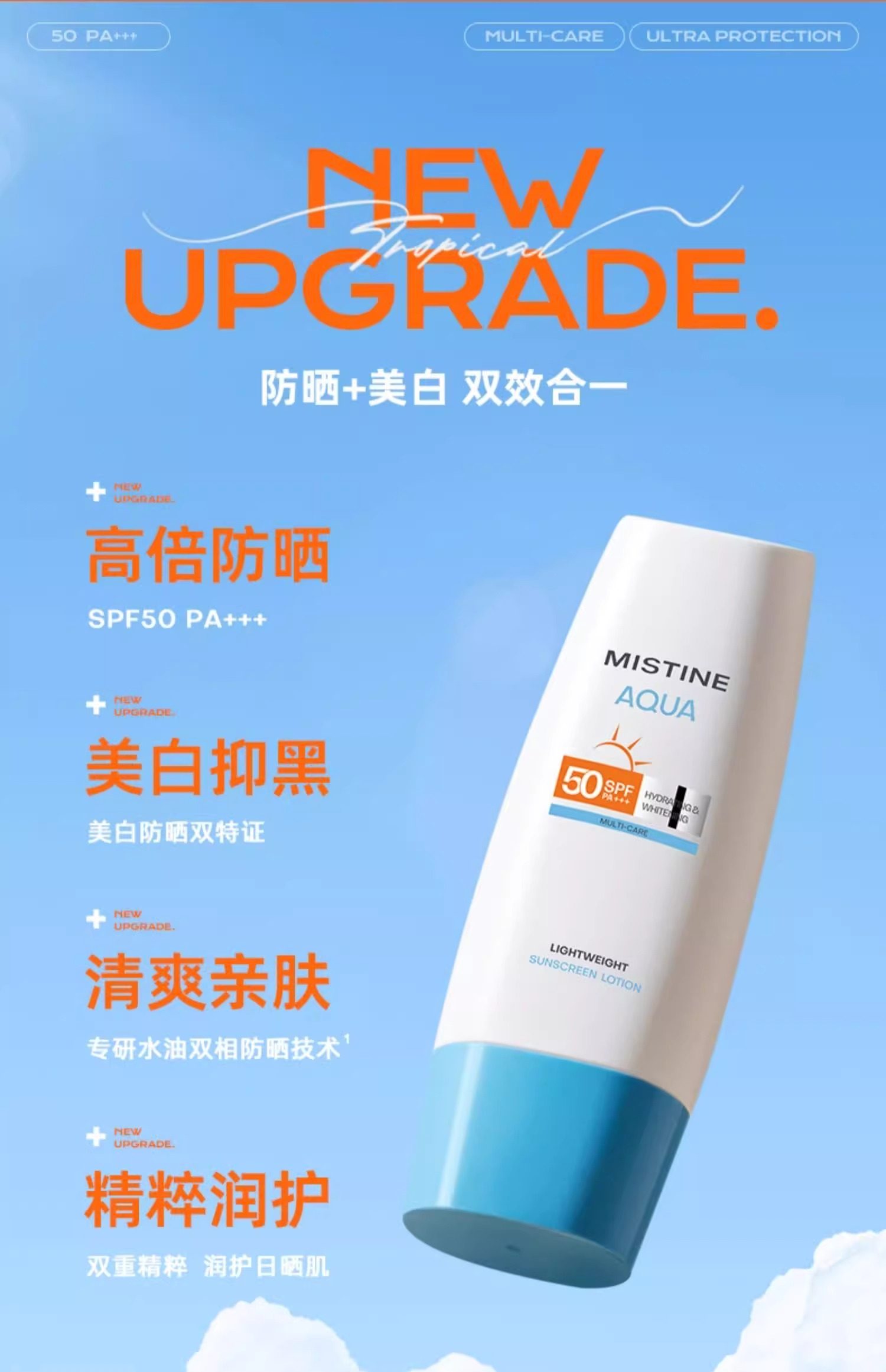 蜜丝婷 白皙清透保湿防晒乳70ml SPF50+