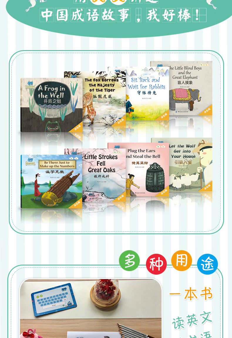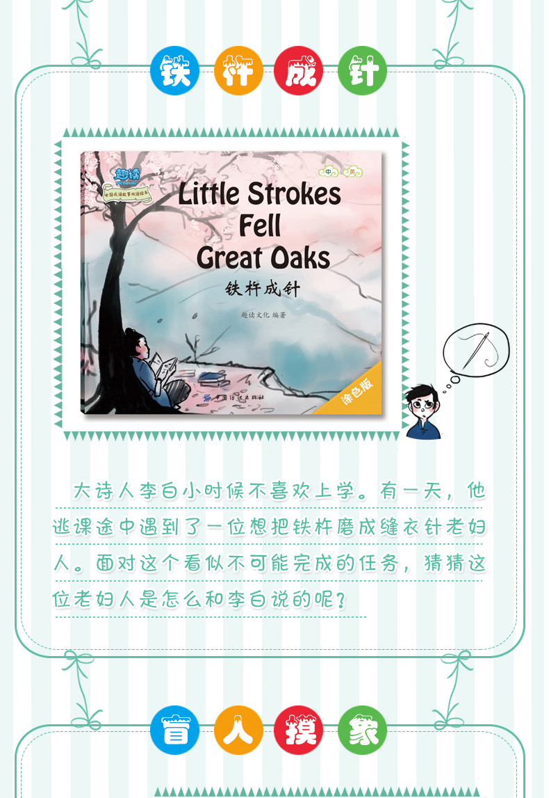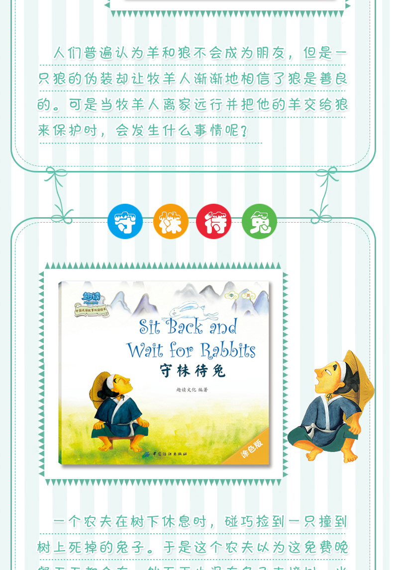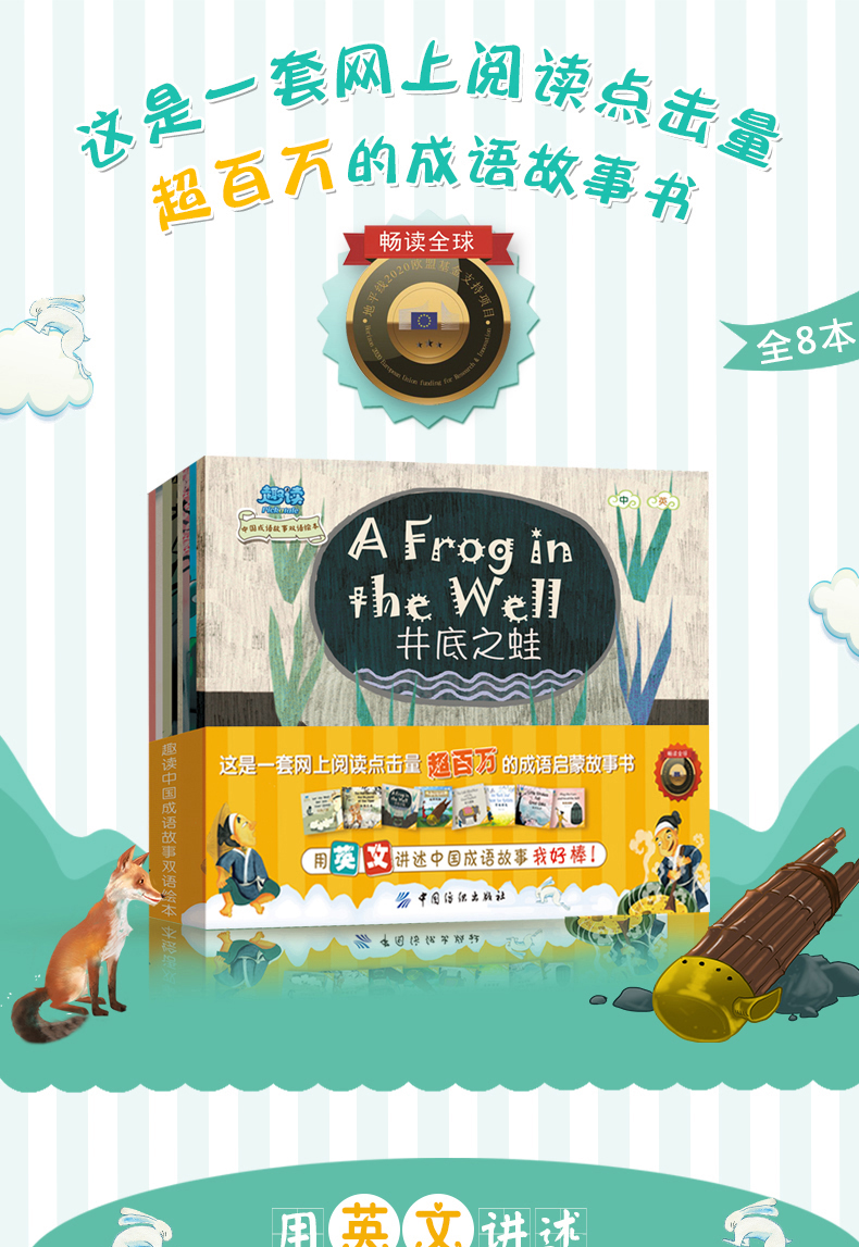 趣读中国成语故事双语绘本 全8册幼儿双认知绘本0-1-2-3-6岁幼儿园英语启蒙入门教材绘本图画故事书 少儿童中英文双语早教认知书籍