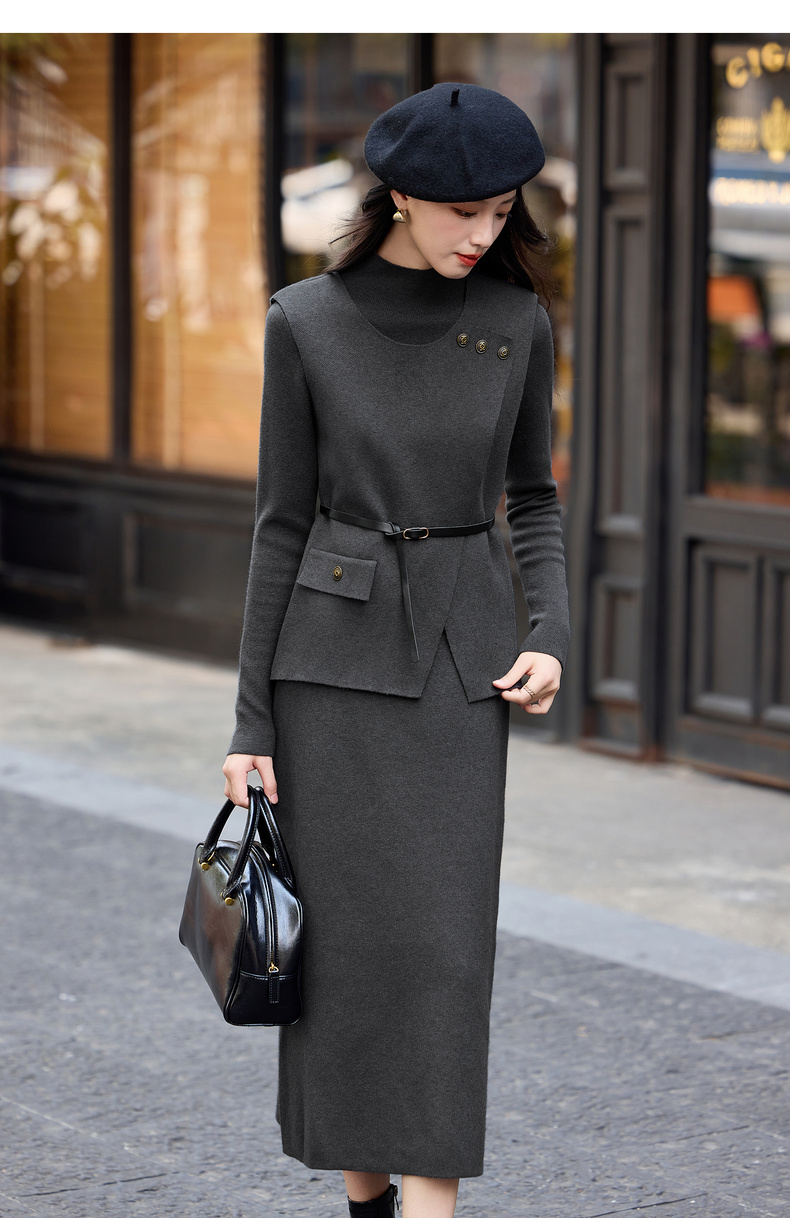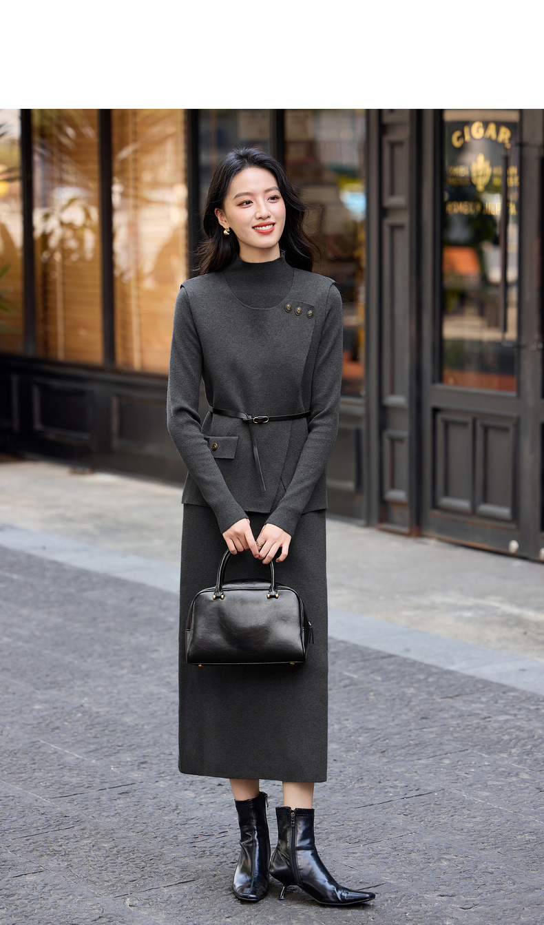 【内购】【免搭配针织三件套】通勤厚保暖圆领马夹&打底衫&松紧高腰直筒裙-W54ZF4849
