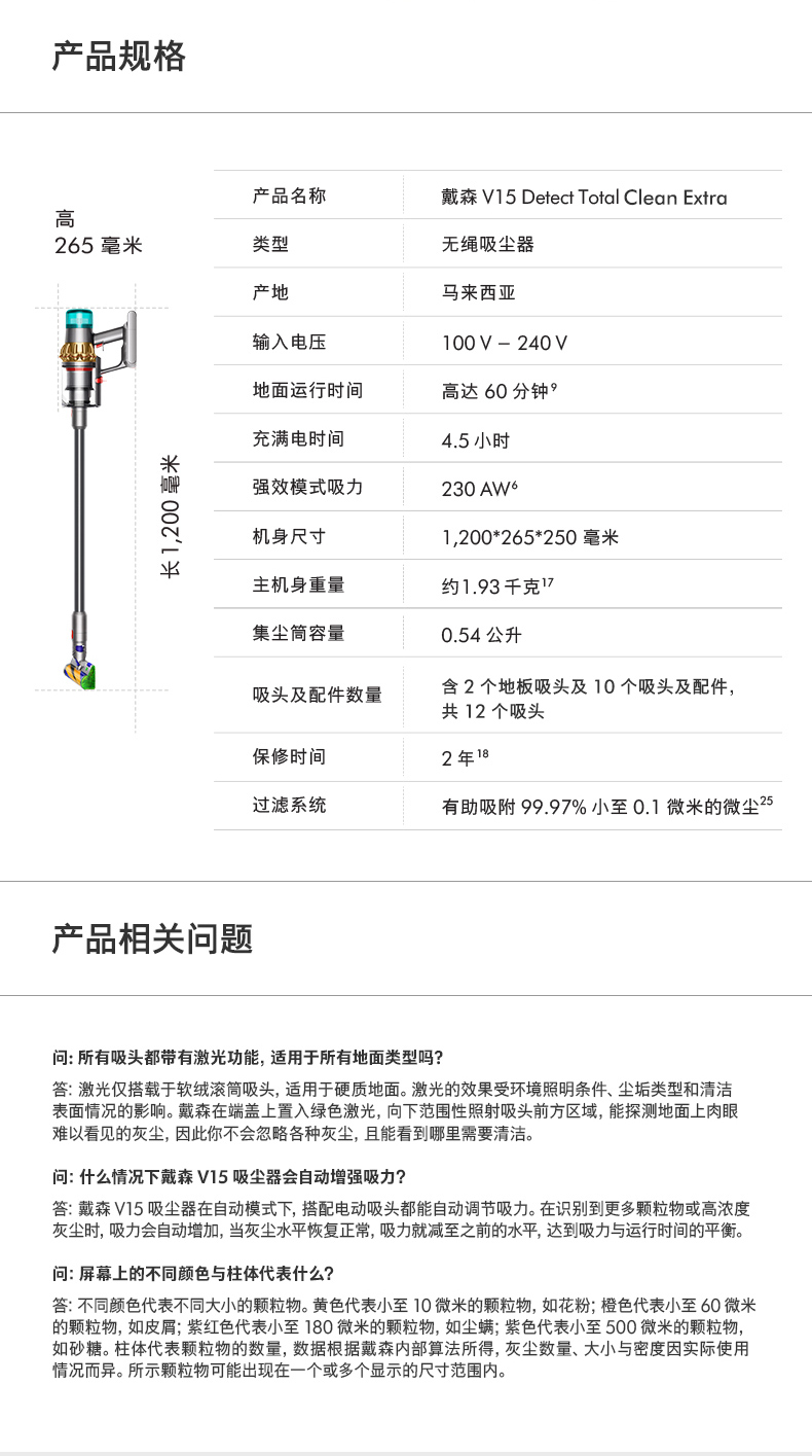 Dyson戴森无绳吸尘器 V15 Detect Total Clean Extra(镍色)
