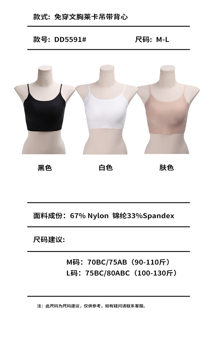 【活动商品,不退不换】冰凉裸感 轻薄无痕 莱卡吊带 免穿BRA 内搭外穿都好看~