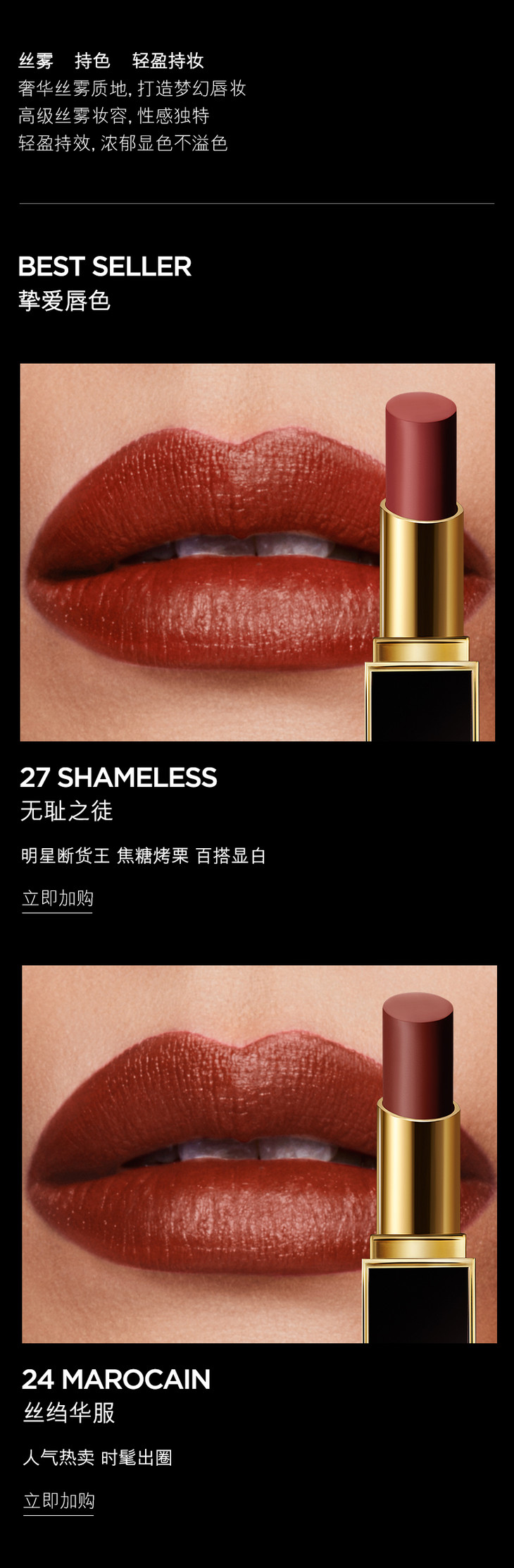 TF(TOM FORD) 黑细管唇膏口红 #24/27/28/08/50/52