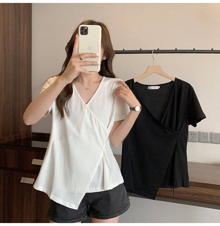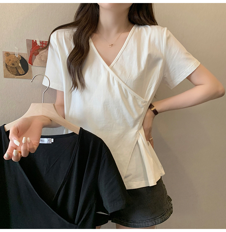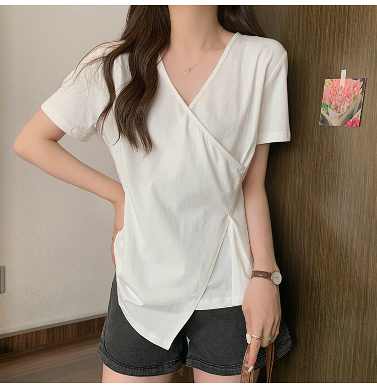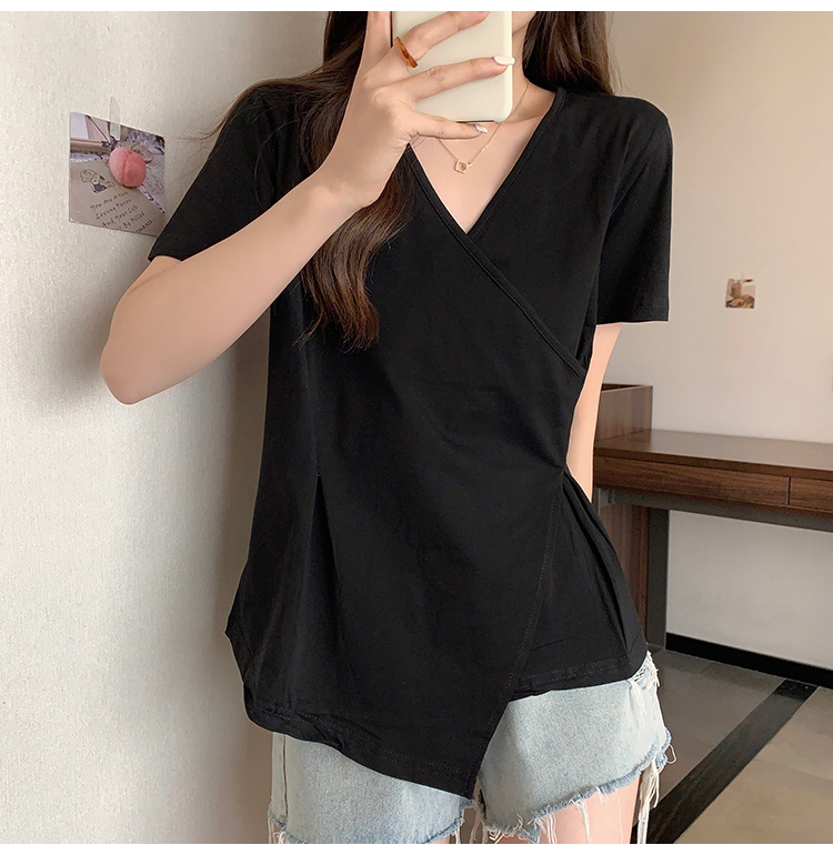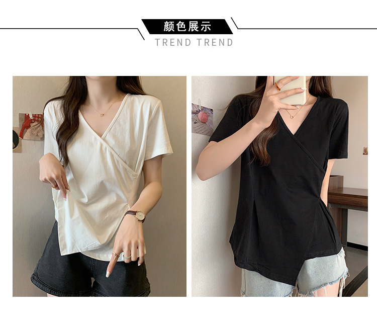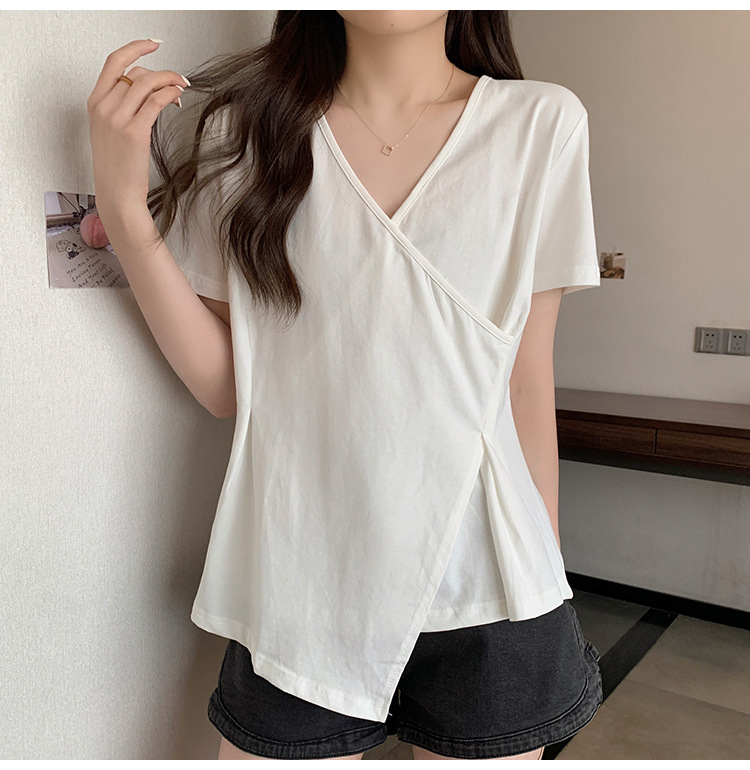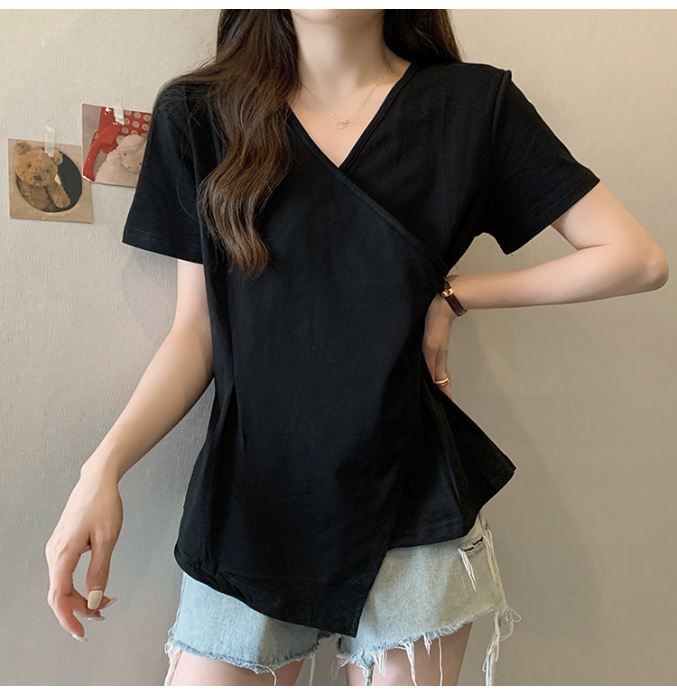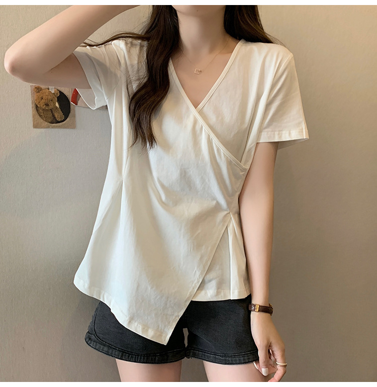 大码女装2025夏装新款洋气V领短袖T恤胖妹妹显瘦宽松设计感上衣潮