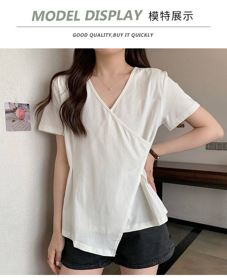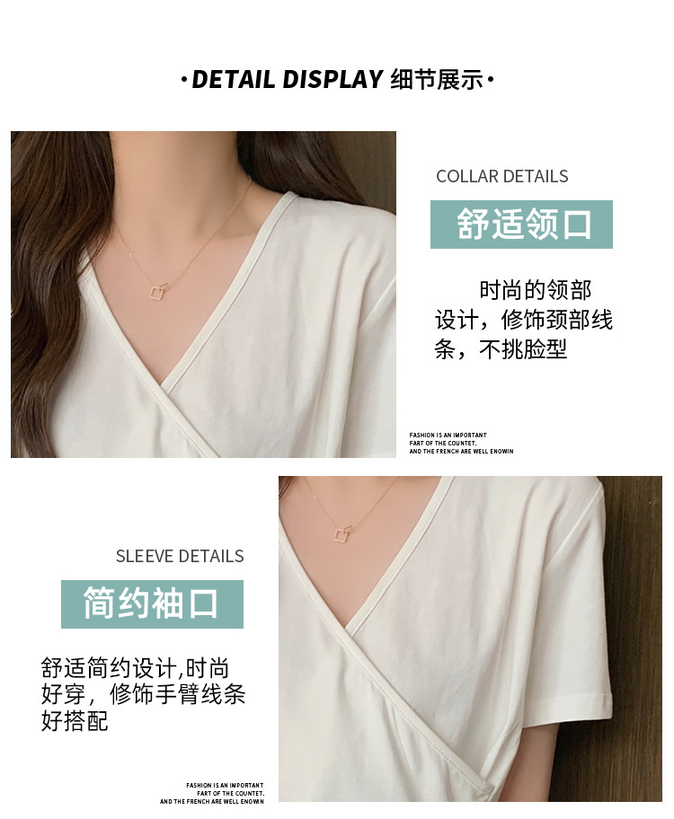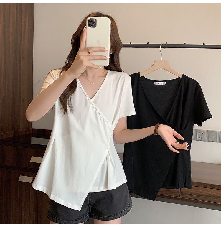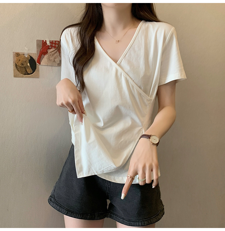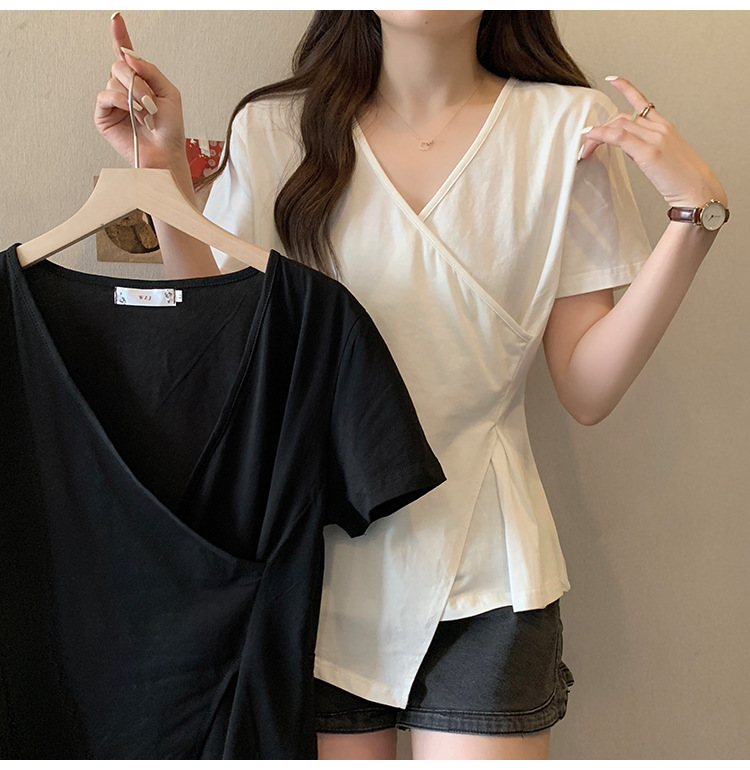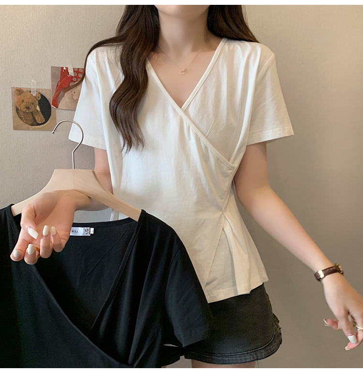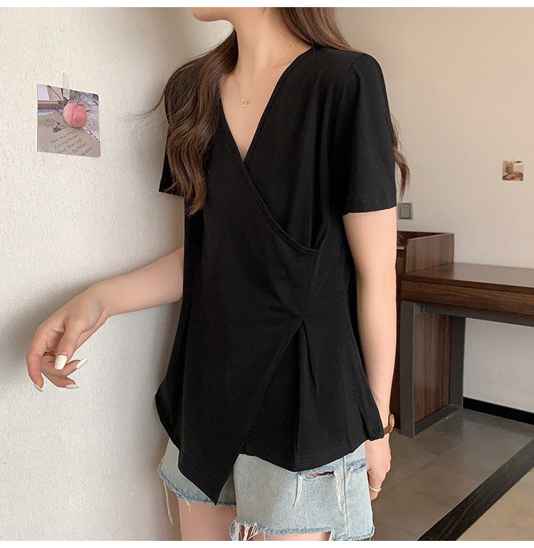 大码女装2025夏装新款洋气V领短袖T恤胖妹妹显瘦宽松设计感上衣潮