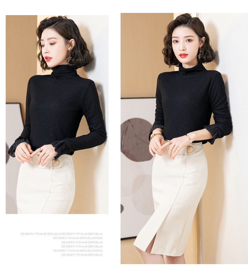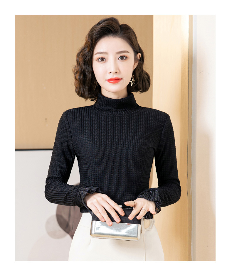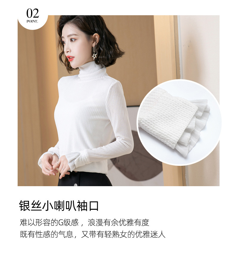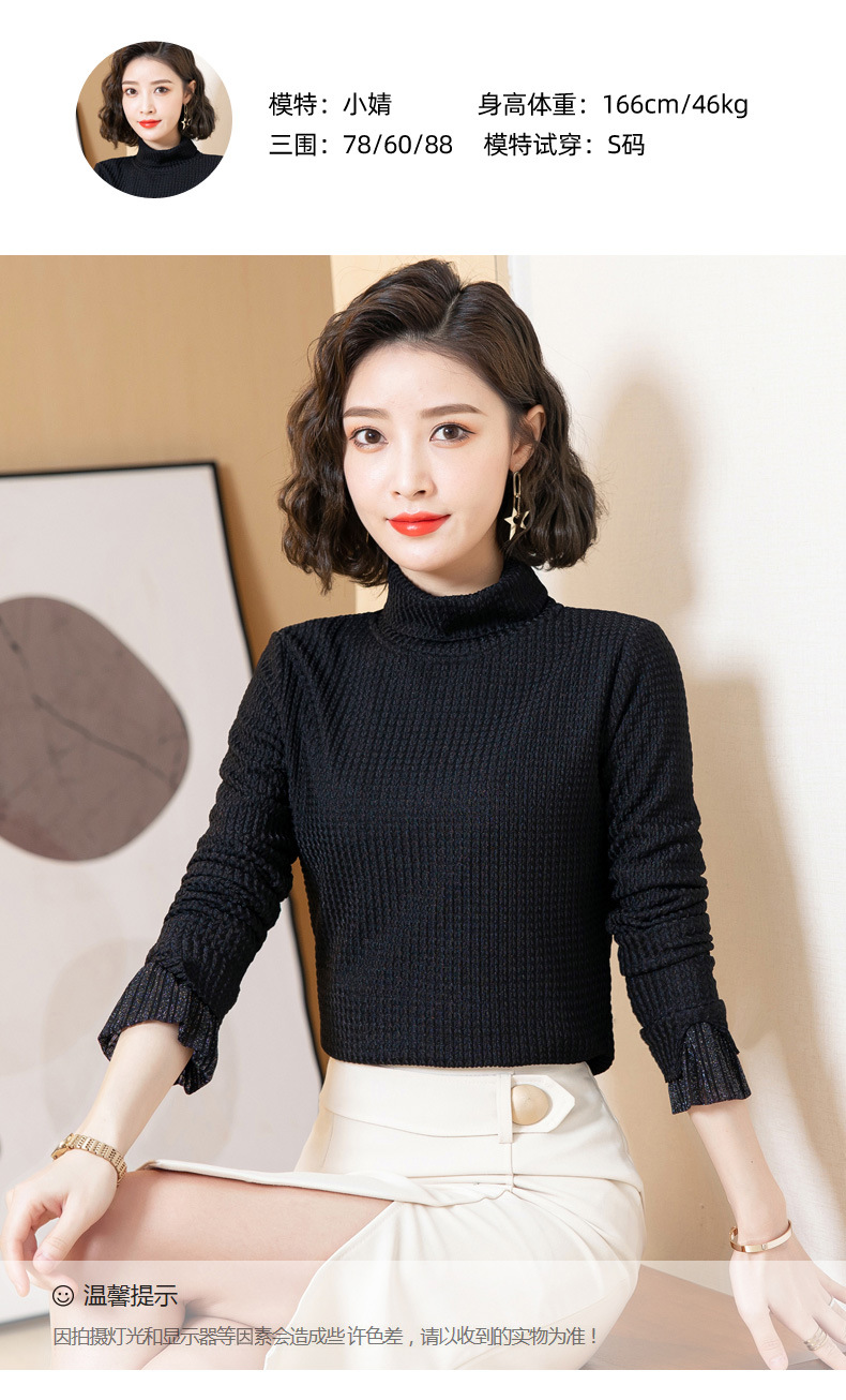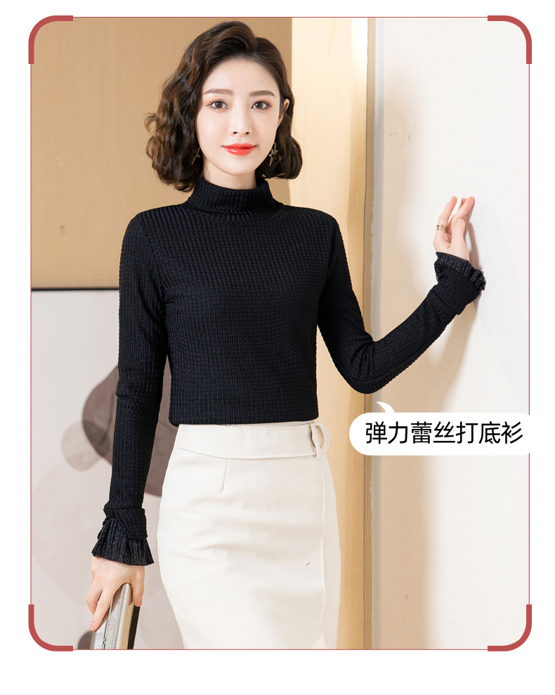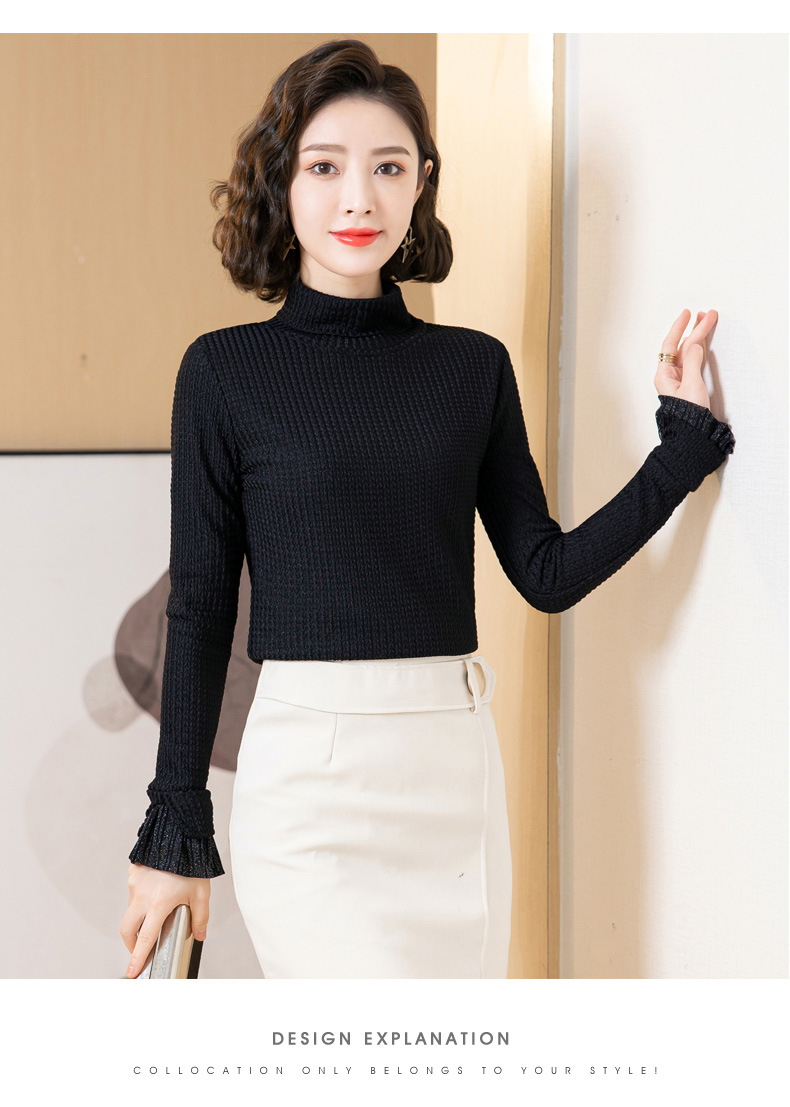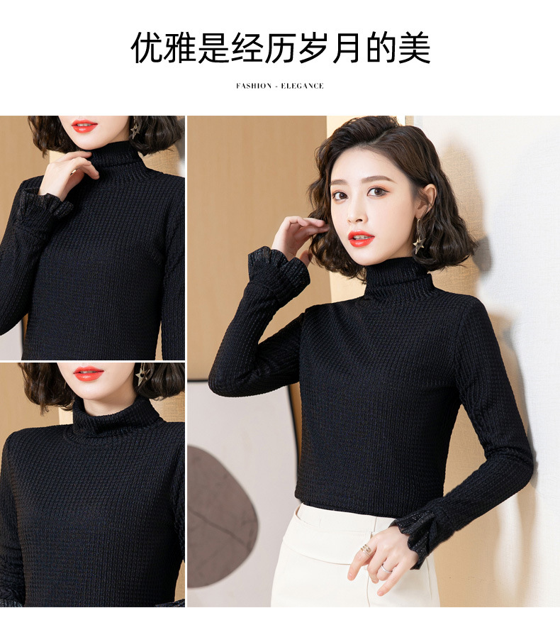 时尚修身半高领丝绒绣花长袖打底衫KQL1306