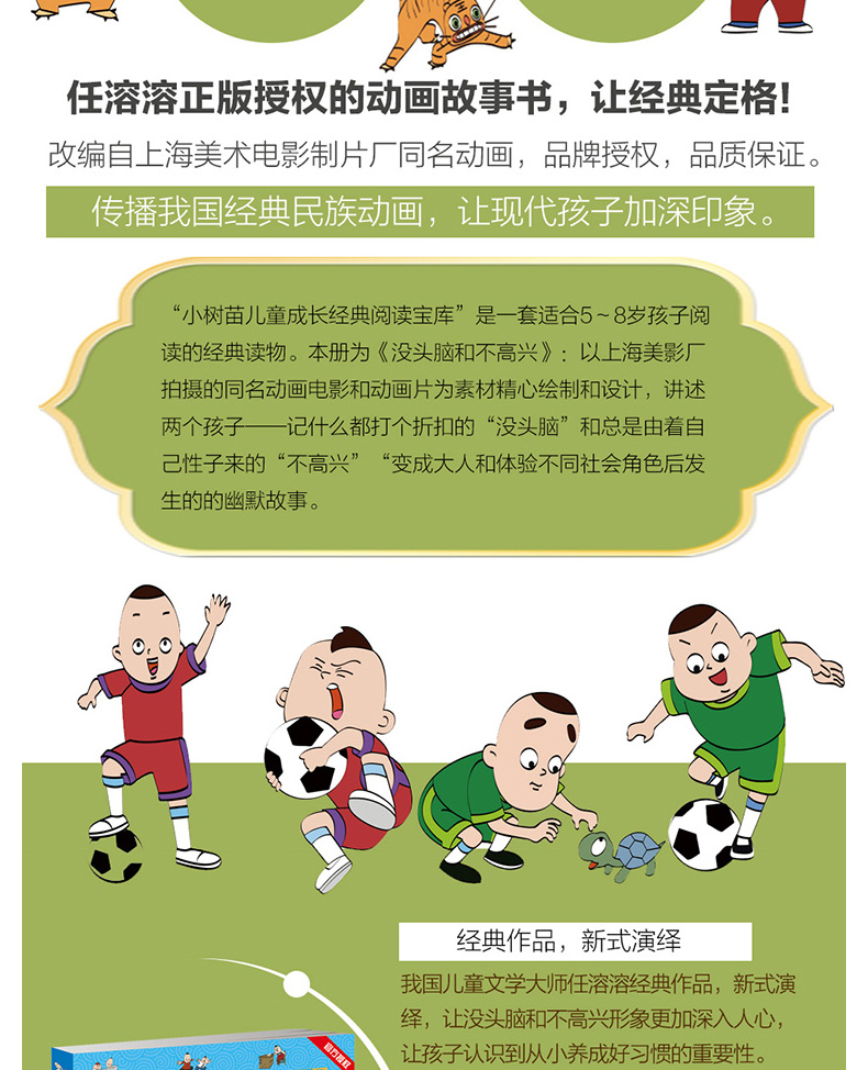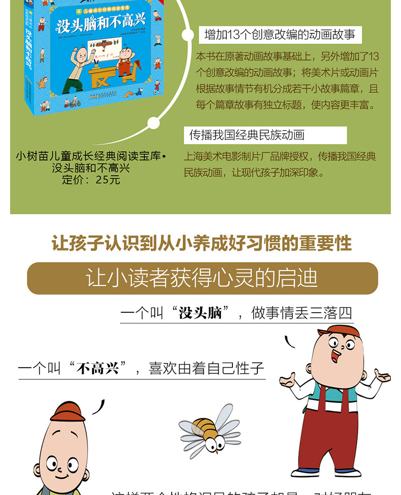 2.我国儿童文学大师任溶溶经典作品,新式演绎,让没头脑和不高兴形象更加深入人心,让孩子认识到从小养成好习惯的重要性。
