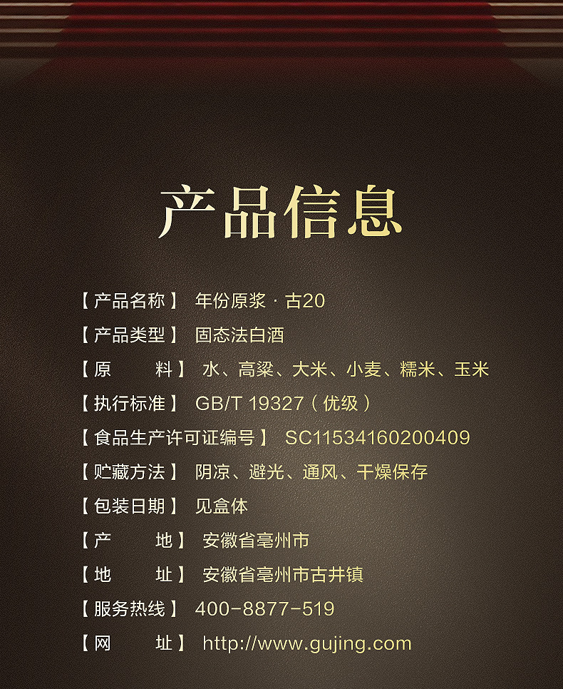 心选丨古井贡酒年份原浆52°古20  500ml*1 白酒 商品图2