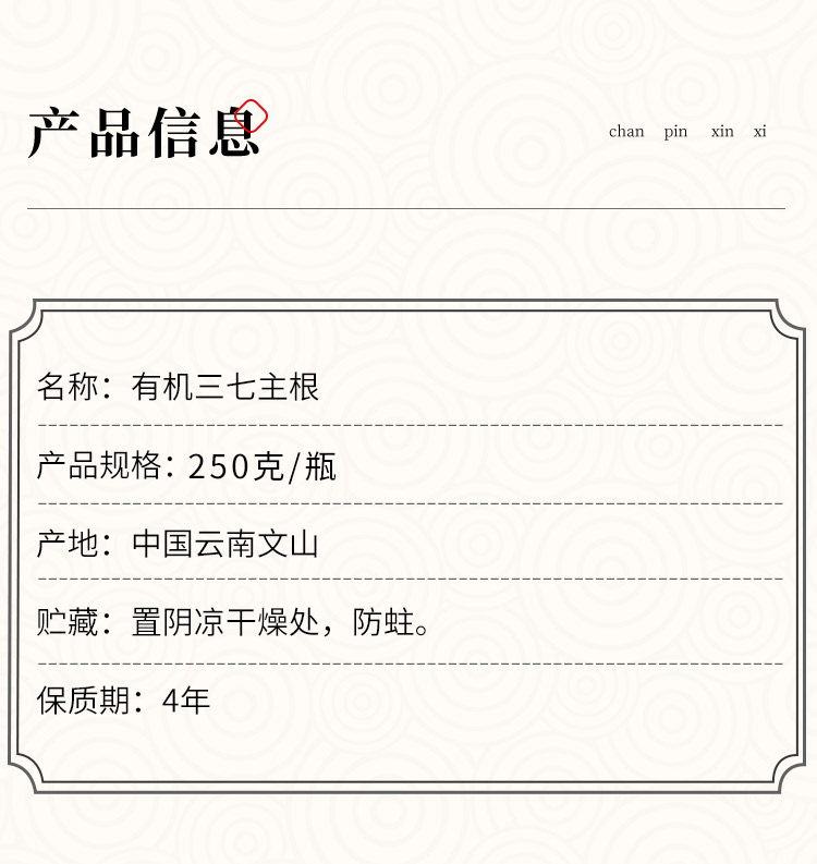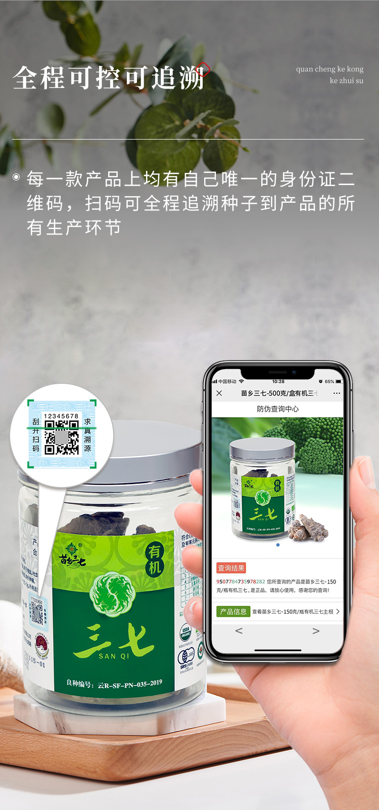 苗乡有机三七主根40头 150g瓶/250g瓶