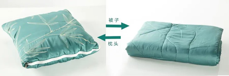 拉链顺滑不卡顿,中间还有绗缝固定,打开成被,合拢成枕时,都不会跑绒。