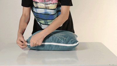 这个靠垫的好还不止于此。打开两边的拉链,一个靠枕,瞬间就变成了一张小被子。