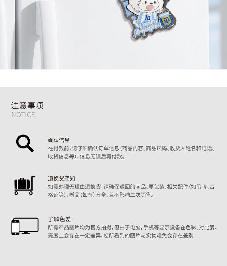 【官方正版】阿根廷国家队 | 卡通小羊冰箱贴梅西磁贴球迷纪念周边