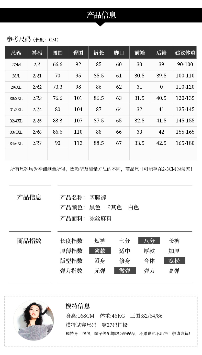 宽松休闲时尚裙裤,松紧腰简约修身九分阔腿裤MYX-BFZY-8507-L