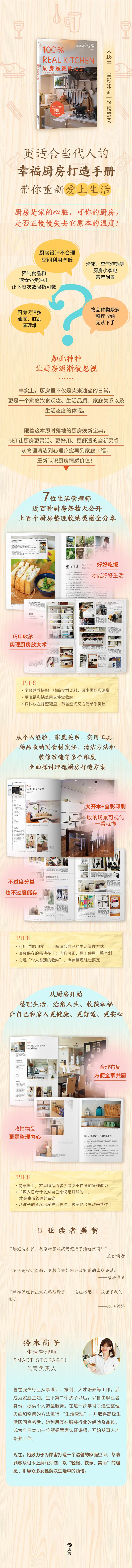 这是一本实用的厨房整理改造指南,更是一本充满爱与灵感的生活手册。它让读者明白,关注厨房不仅仅是关注物品整理和日常饮食,更是在探索如何经营温馨有爱的家庭和舒适美好的生活。