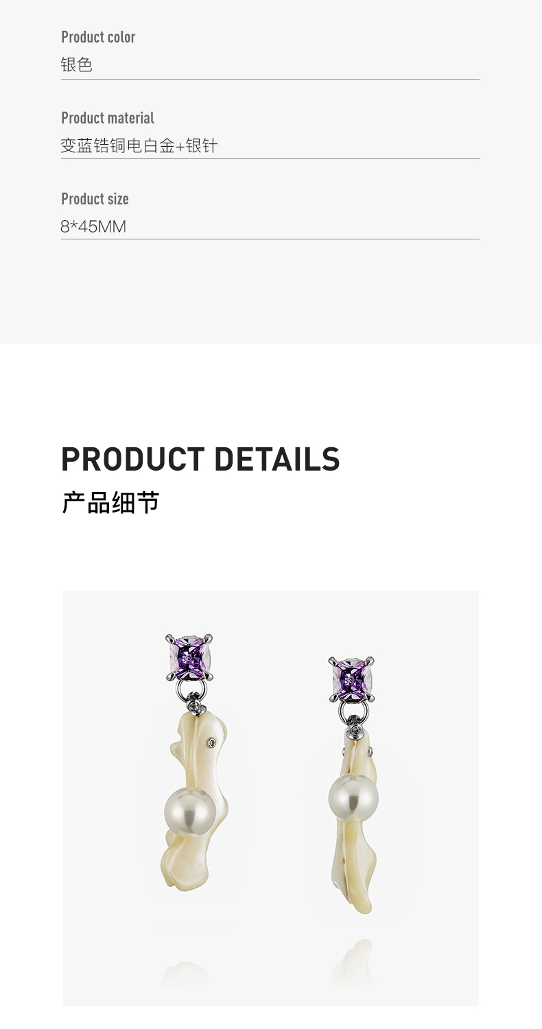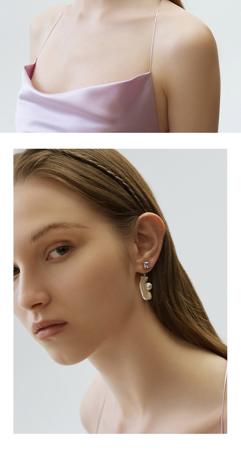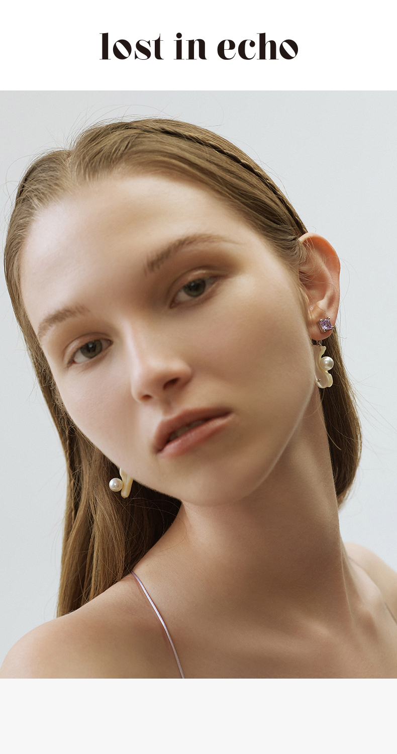 lost in echo 天然马蹄螺贝壳锆石法式珍珠耳环