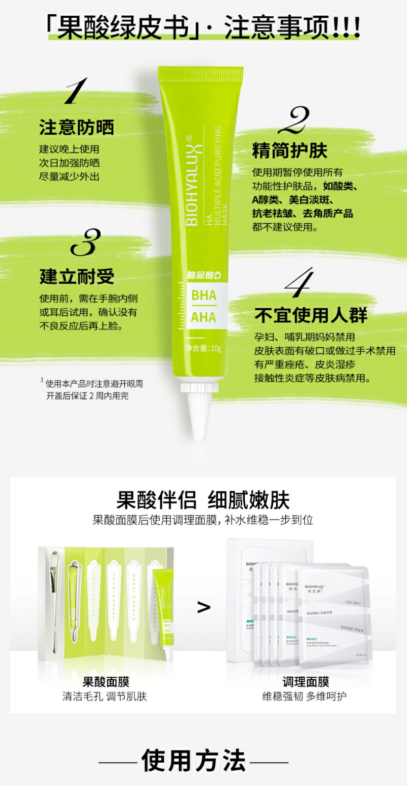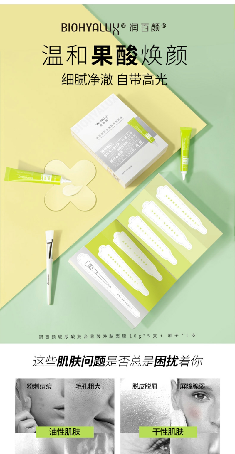 【YZ】润百颜玻尿酸复合果酸净肤面膜10g*5支水杨酸涂抹式面膜补水去黑头