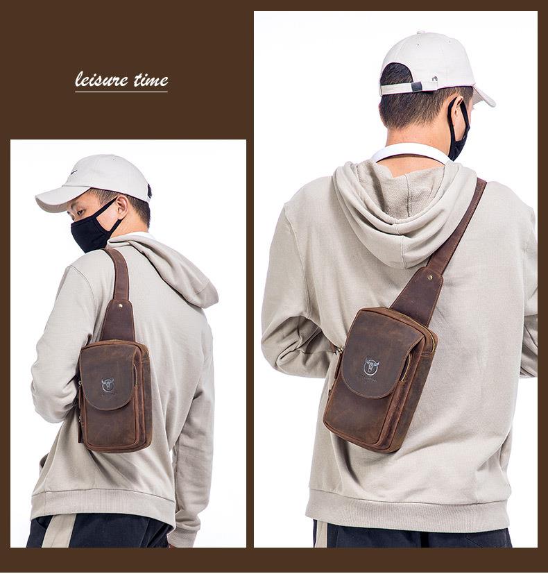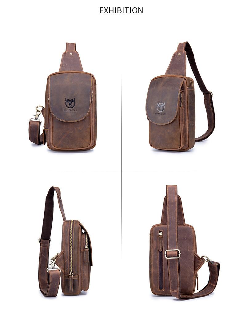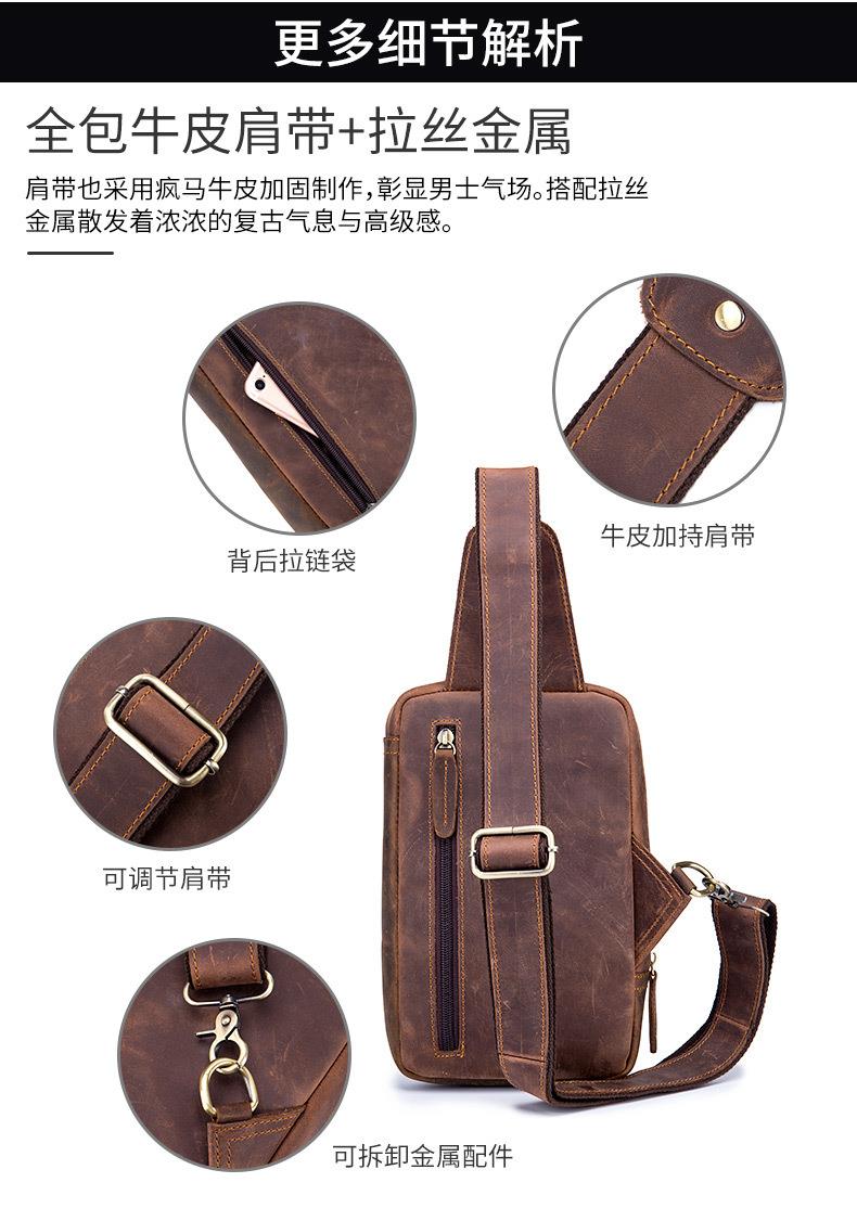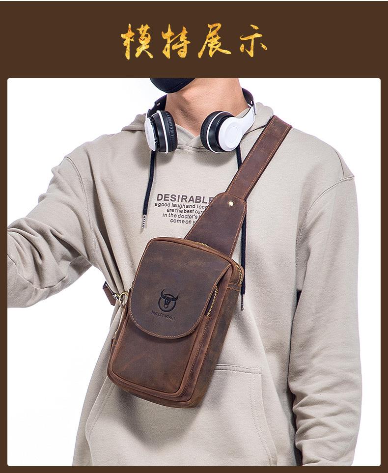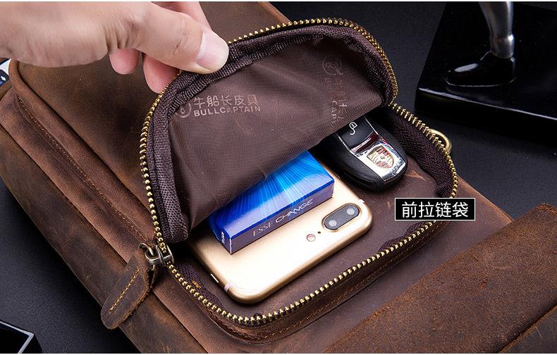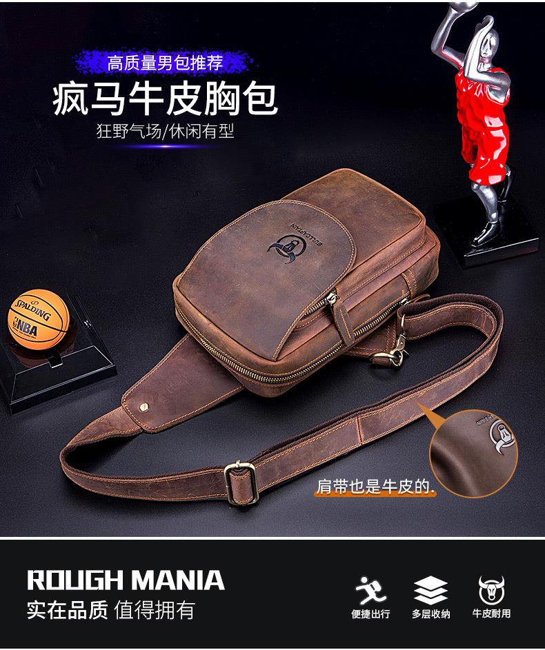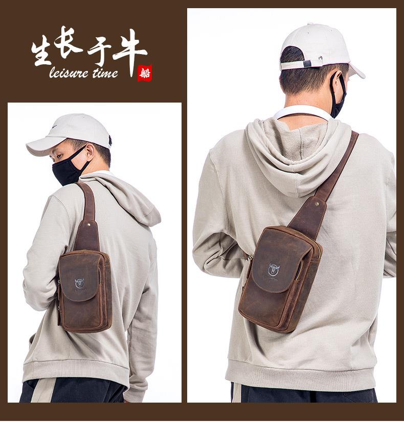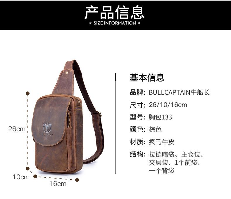 牛船长皮具胸包男真皮复古疯马皮休闲单肩斜跨胸袋手机ipad牛皮包