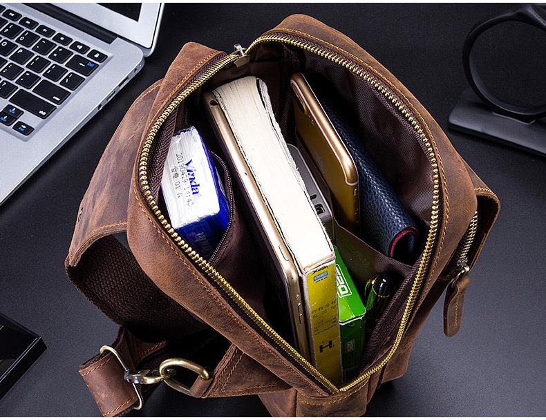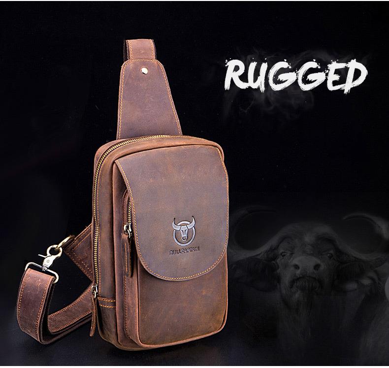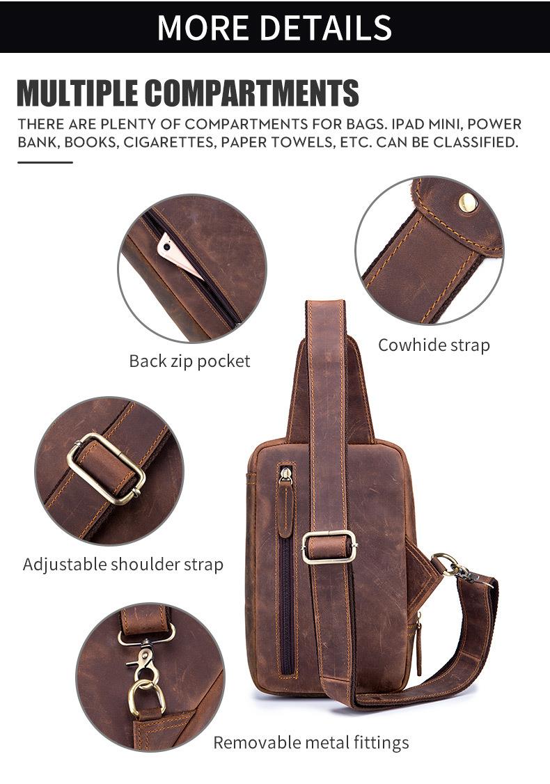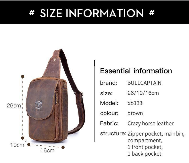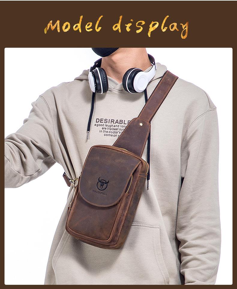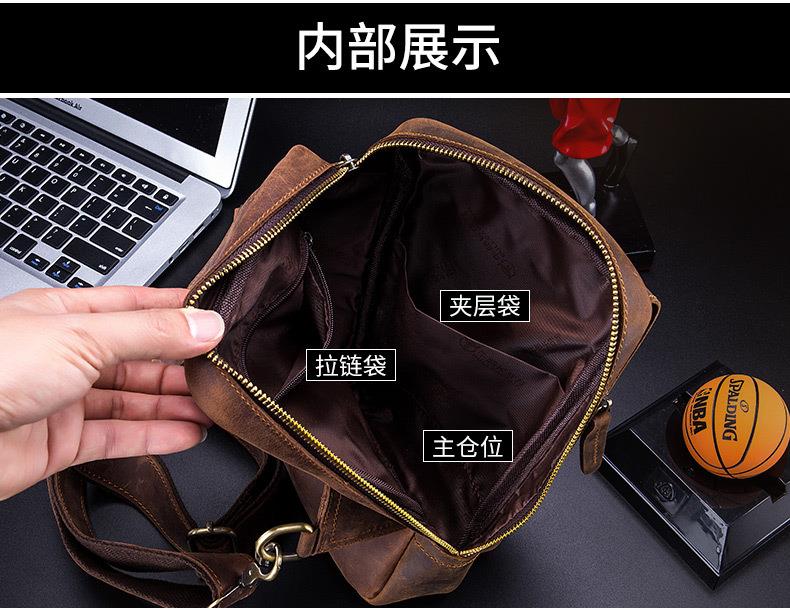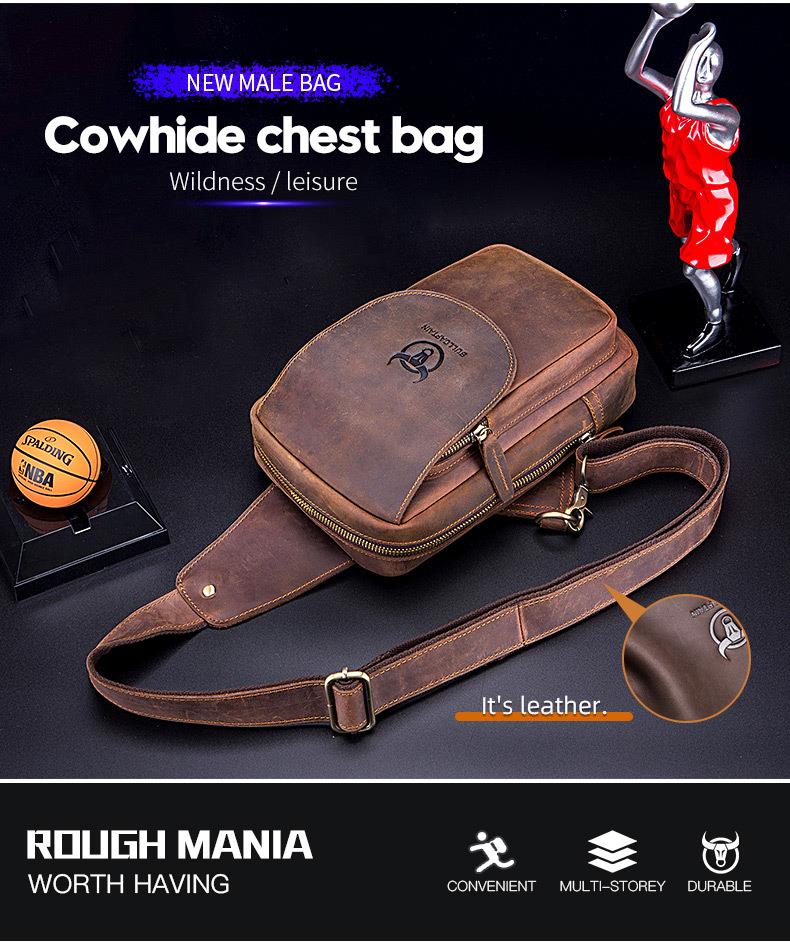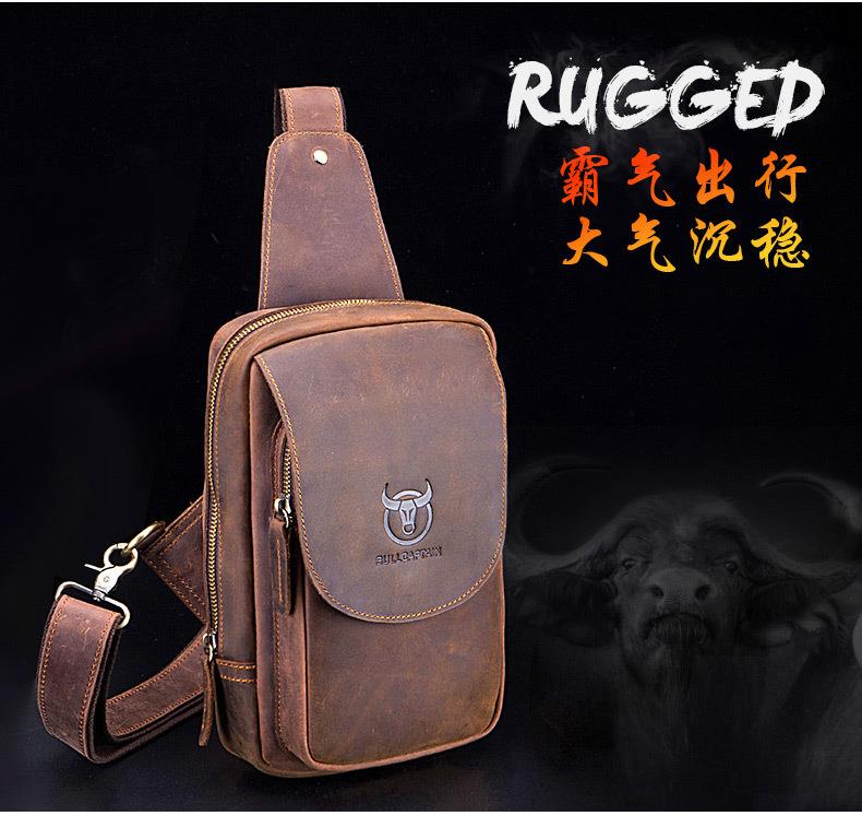 牛船长皮具胸包男真皮复古疯马皮休闲单肩斜跨胸袋手机ipad牛皮包