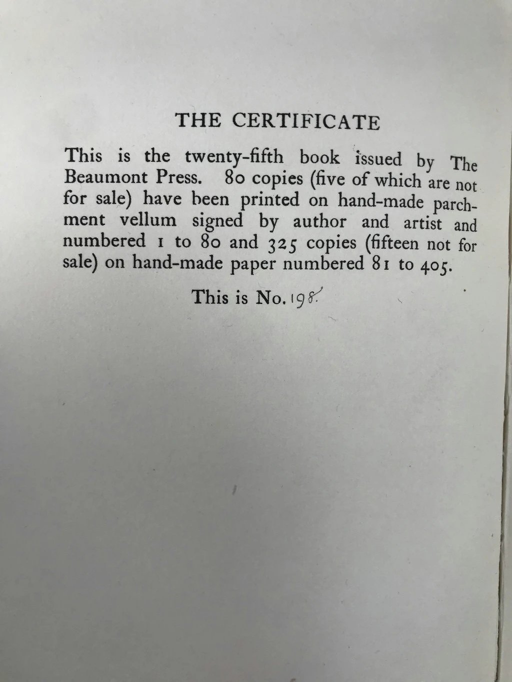 本书为仅发行405册的限量版图书,编号198,卷首有限量标示