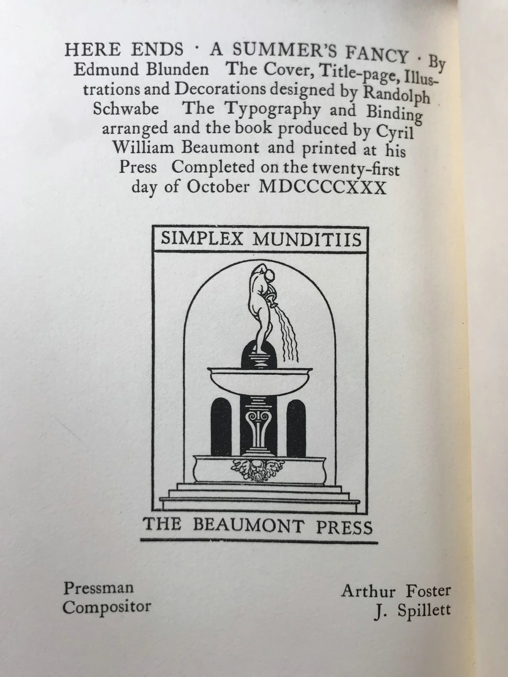 限量签名本!1930年 布伦登《夏日遐想》 施瓦贝4幅插图 布脊精装18开